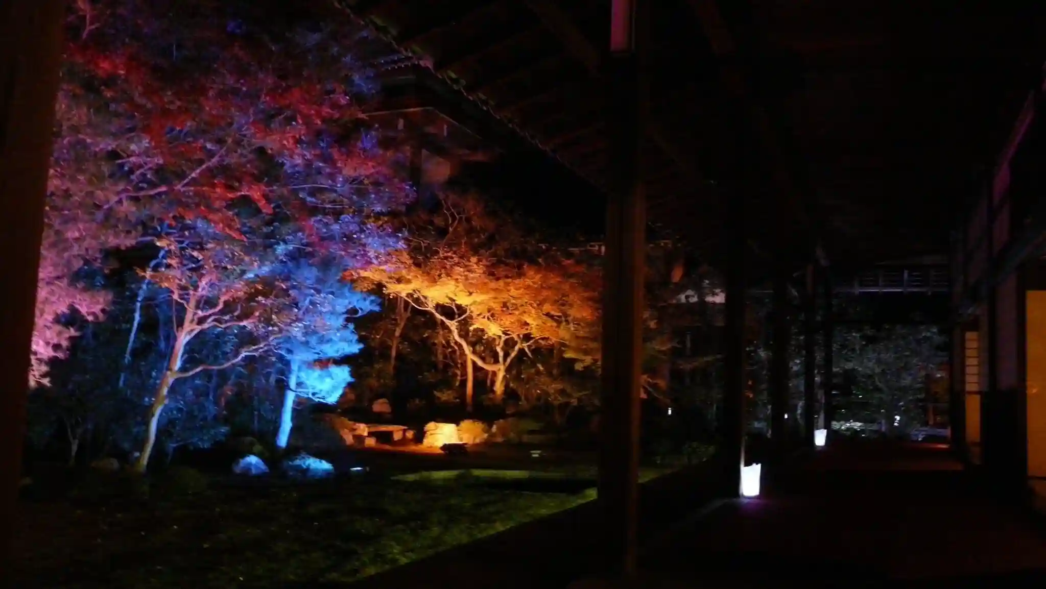 夜間特別拝観でライトアップされた巴の庭。