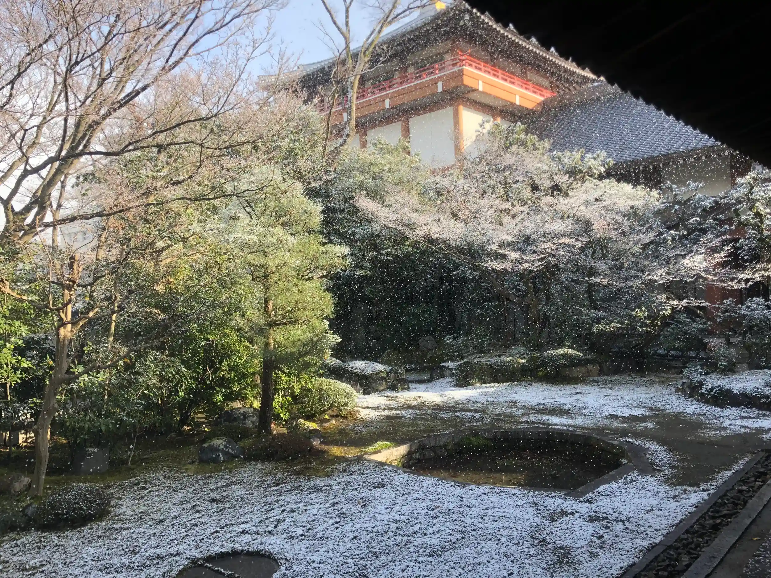 庫裏への入口から。雪のふる中で。