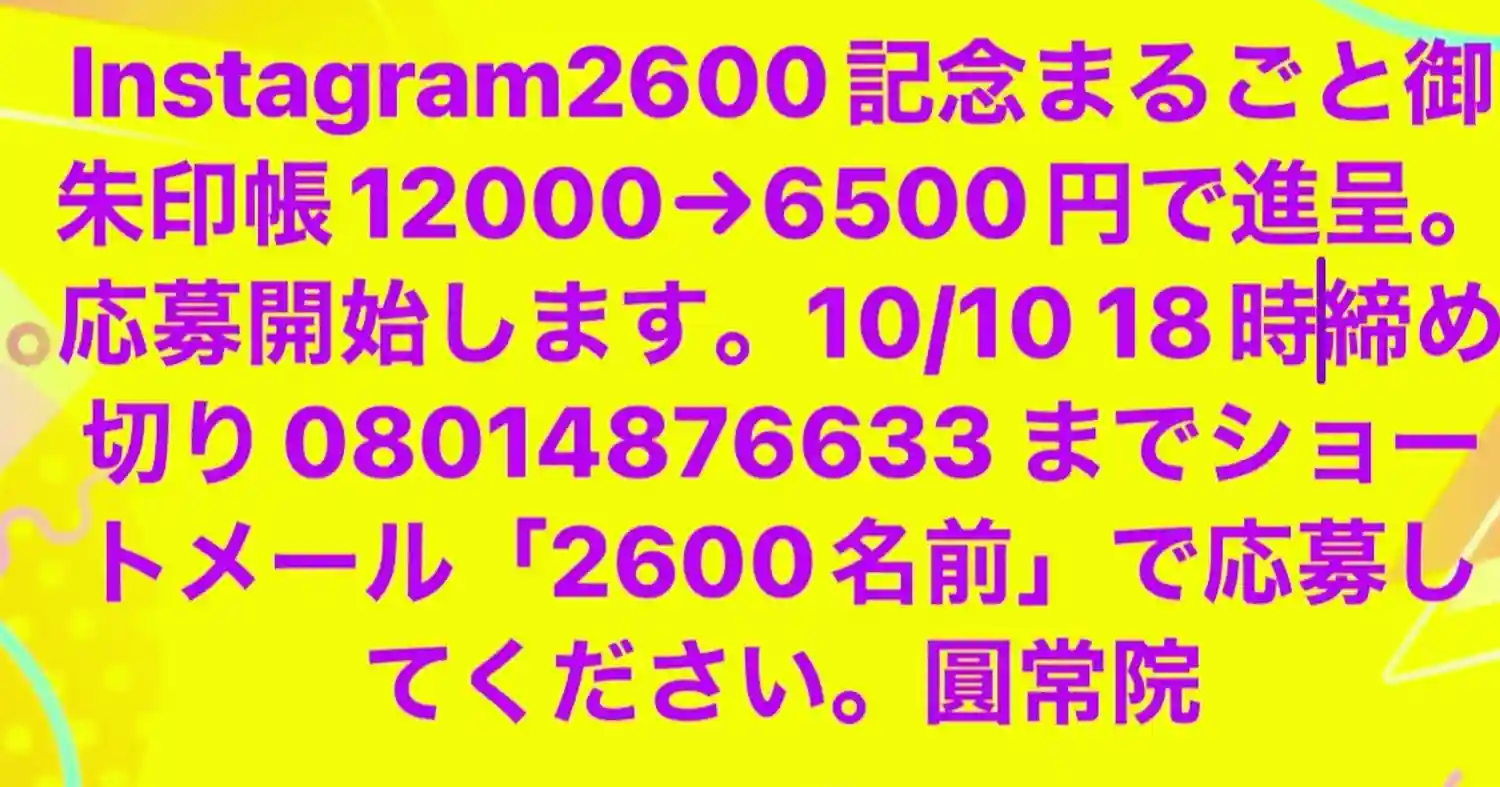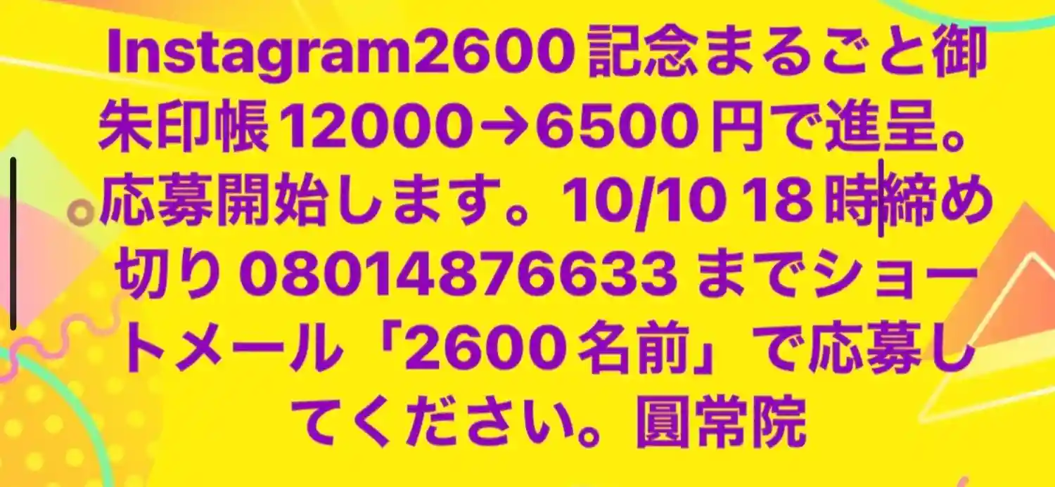 御朱印は、来寺予約、郵送など、お問い合わせは08014876633…