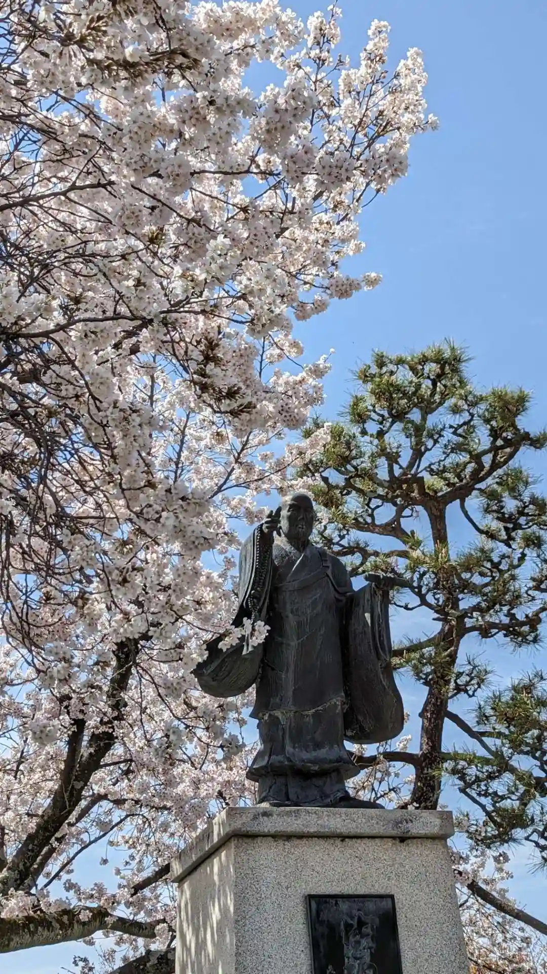 日蓮聖人像と御会式桜