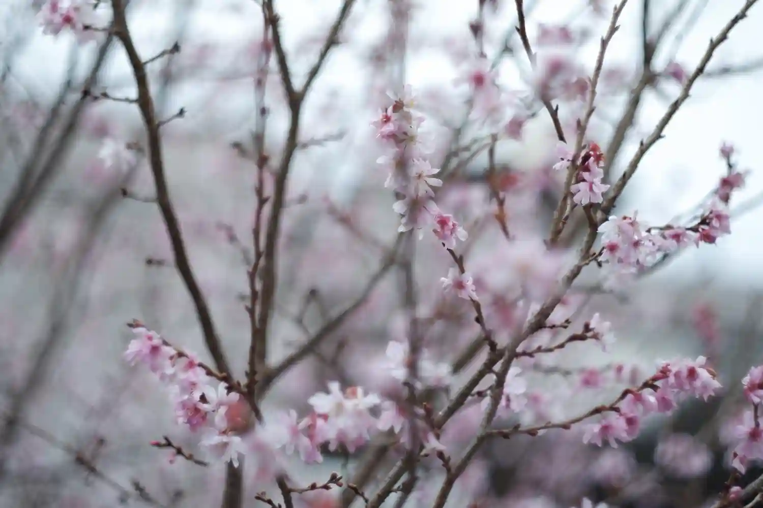 しとしと降る雨、濡れた桜の花び…