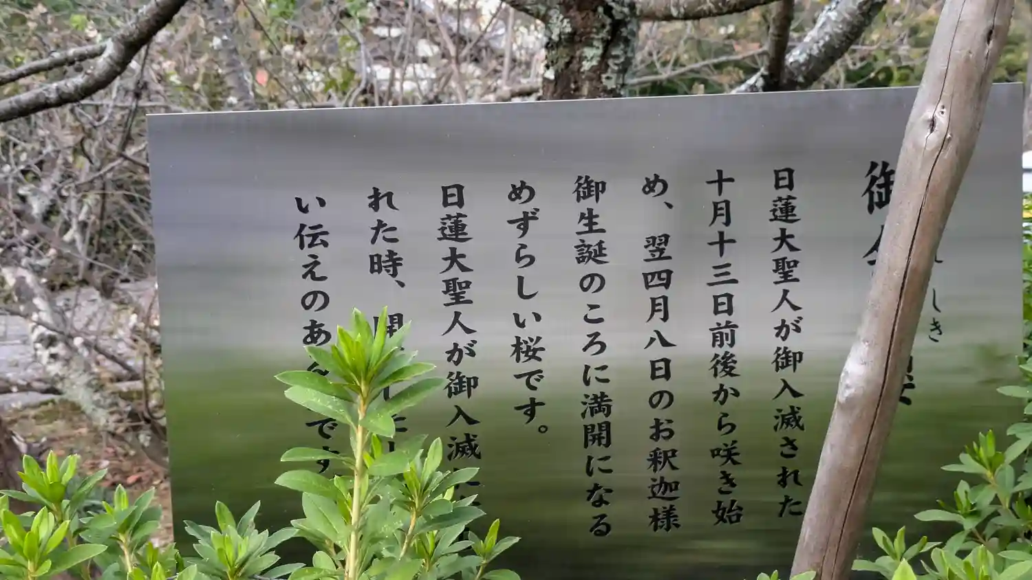 御会式桜が有名 日蓮大聖人が御入滅された十月十三日前後から咲き始め、翌四月八日のお釈迦様御生誕のこ…