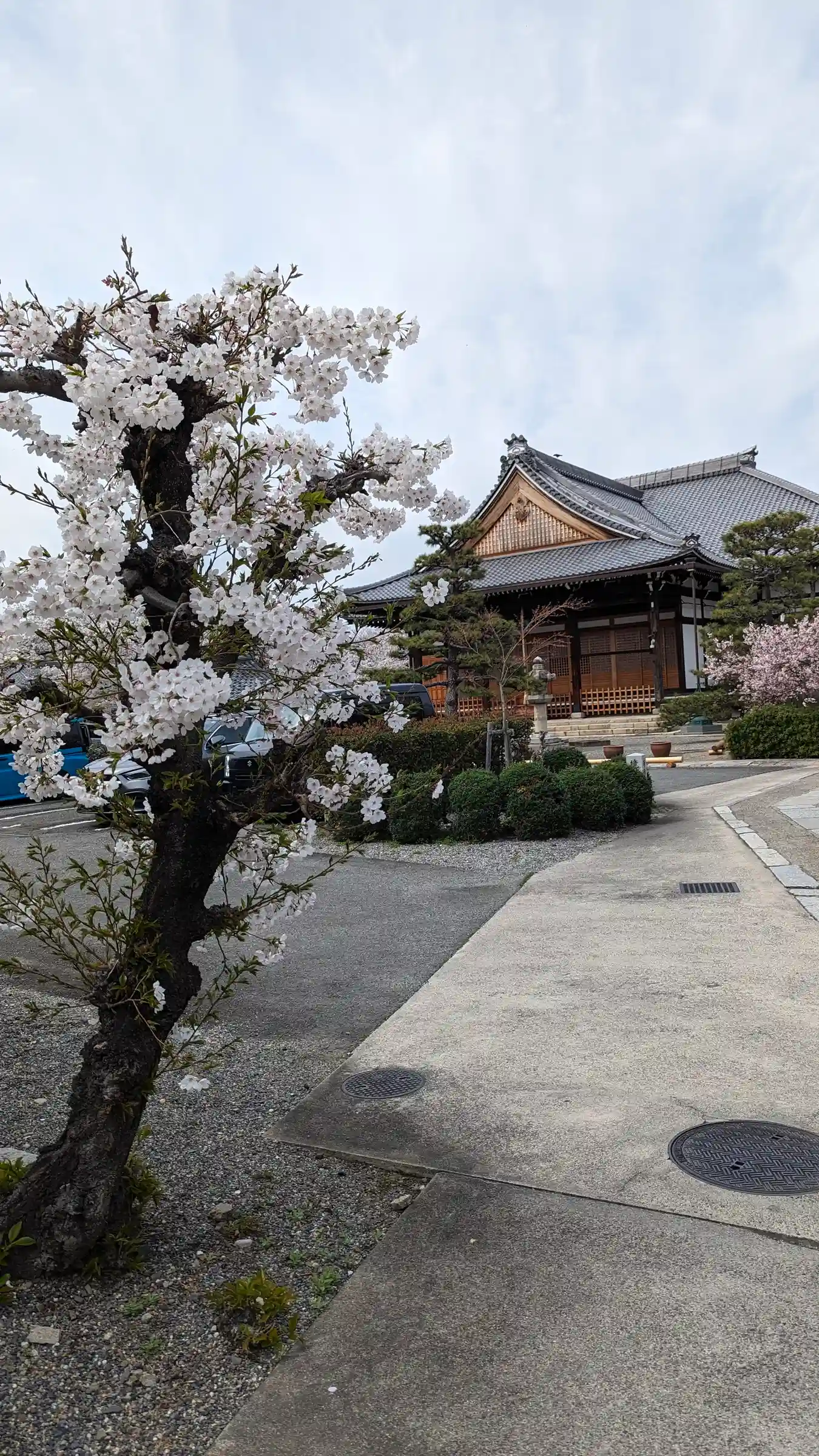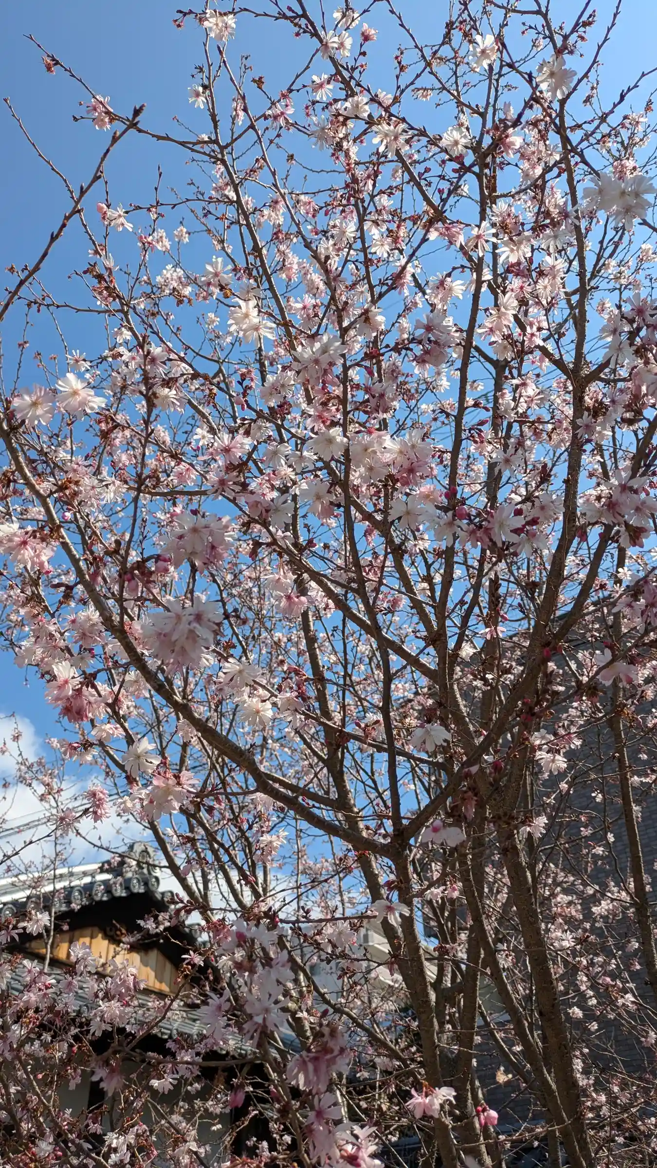北野さんへ向かおうと西へ移動し、山門前の見事な桜に急遽寄り道。御会式桜のこと忘れてたぁ😅
