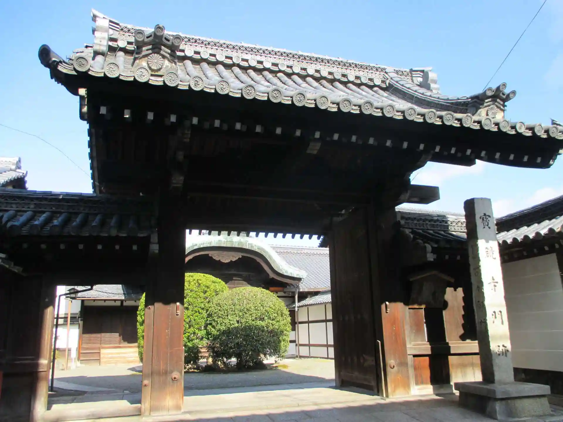 堀川通に戻つて再び北上。寺の内通で左折。ここに大きな門があり、これが宝鏡寺。人形の寺として有名らしいのだが、拝観拒絶との表示が。