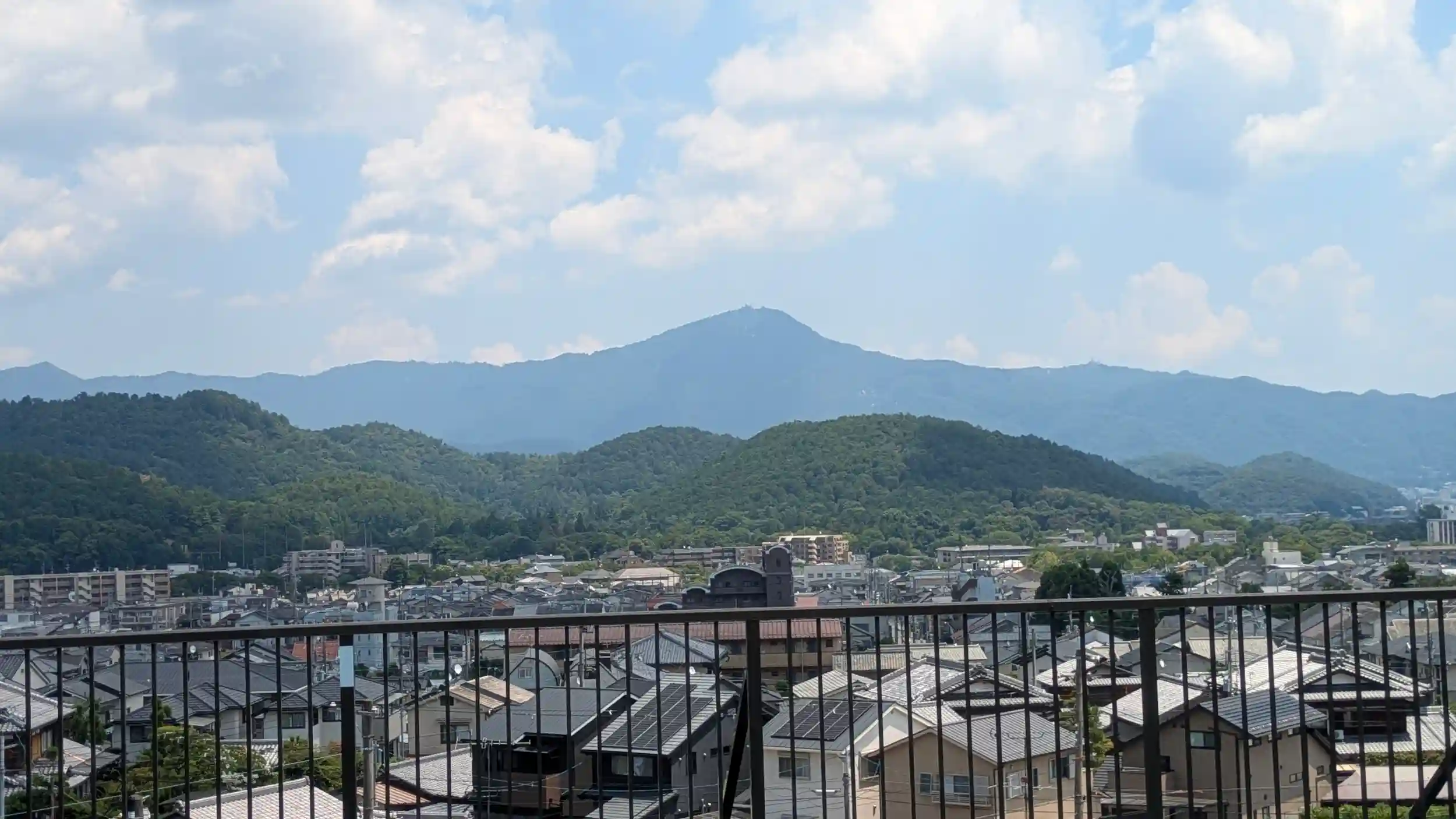 屋上からの絶景。比叡山が良く見えます
