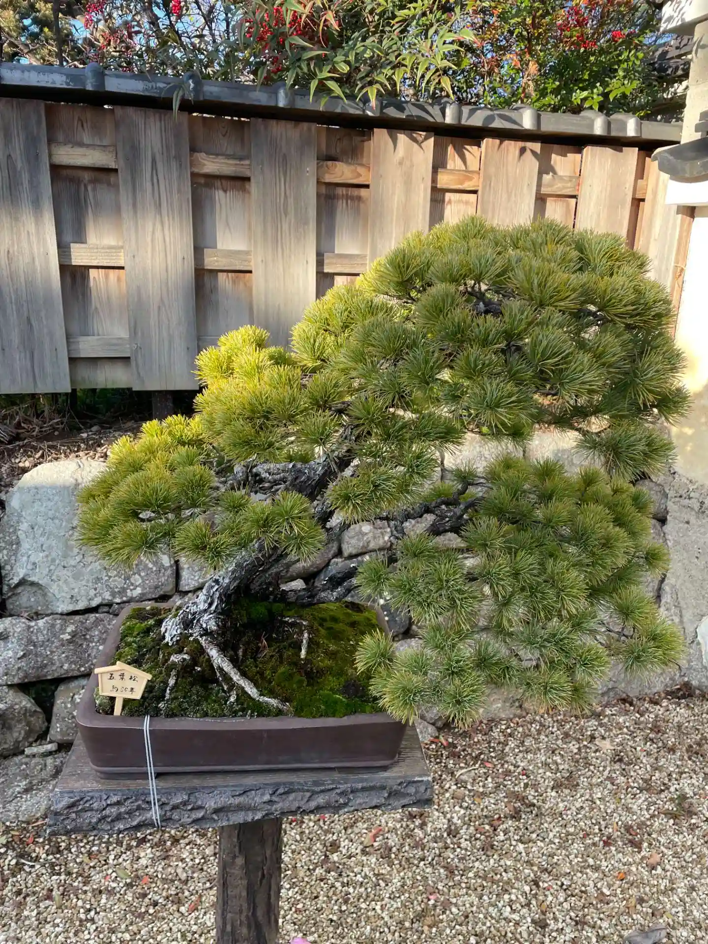 参道にはいくつか盆栽が並んでいて 中には200年ものがありました。