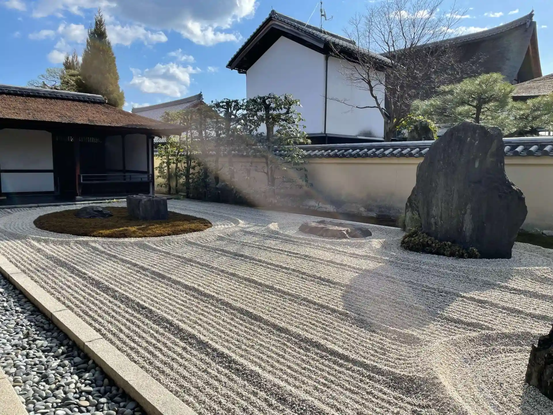 「滹沱底(こだてい)」 「阿吽の庭」とも呼ばれる。白砂の庭で 阿吽の石と名付けられた2つの石は聚楽第の遺構といわれる。