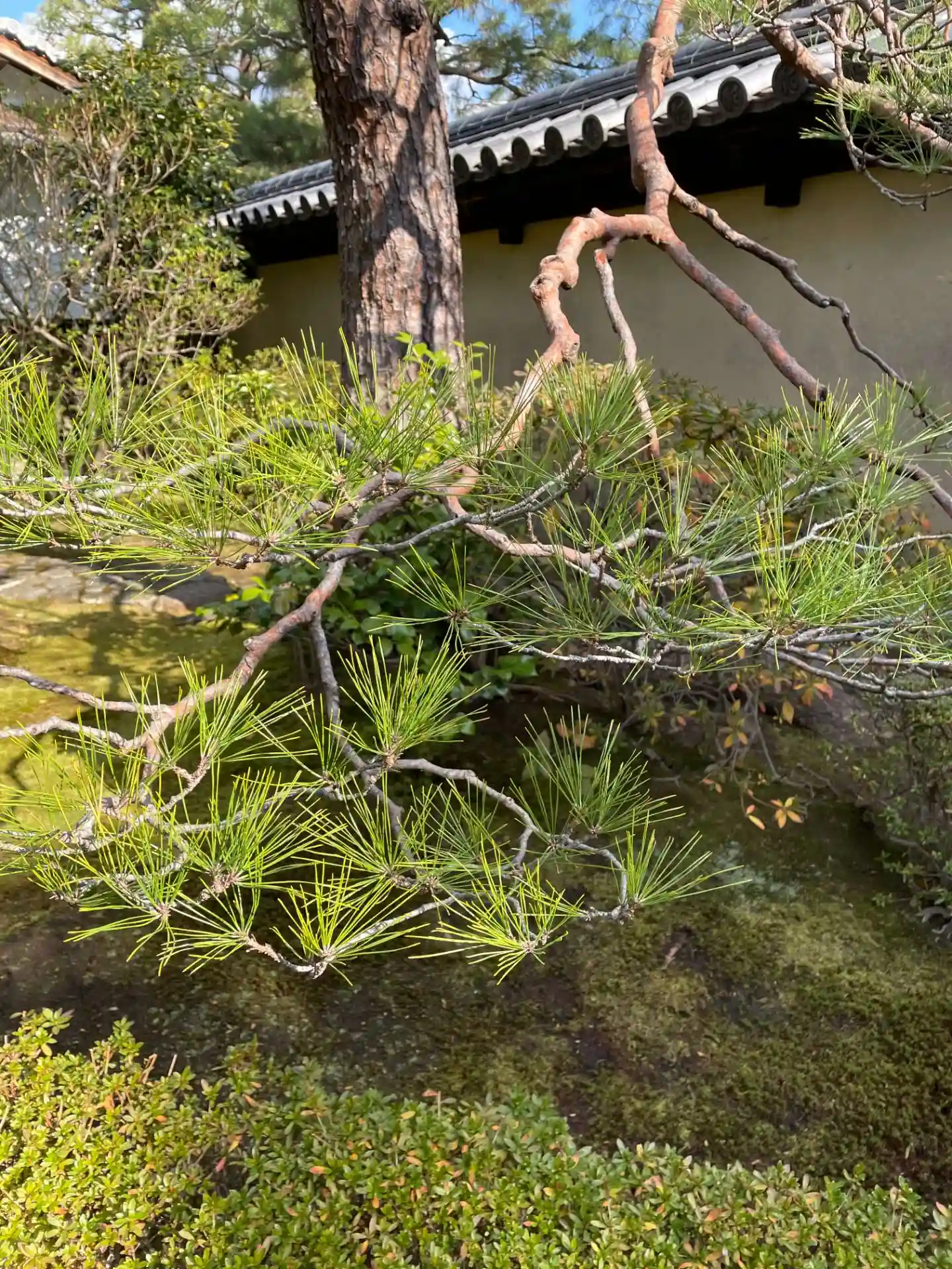 「龍吟庭(りょうぎんてい)」 方丈北側に広がる三尊石組からなる室町時代の枯山水庭園で 中央の石組は須弥山を表し 青々とした杉苔は洋々たる大海を表している。