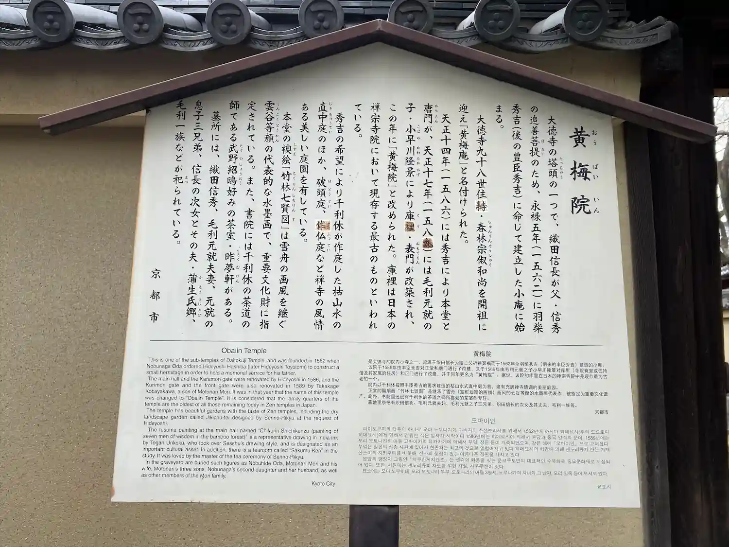 おうばいいん|臨済宗大徳寺派大本山大徳寺塔頭