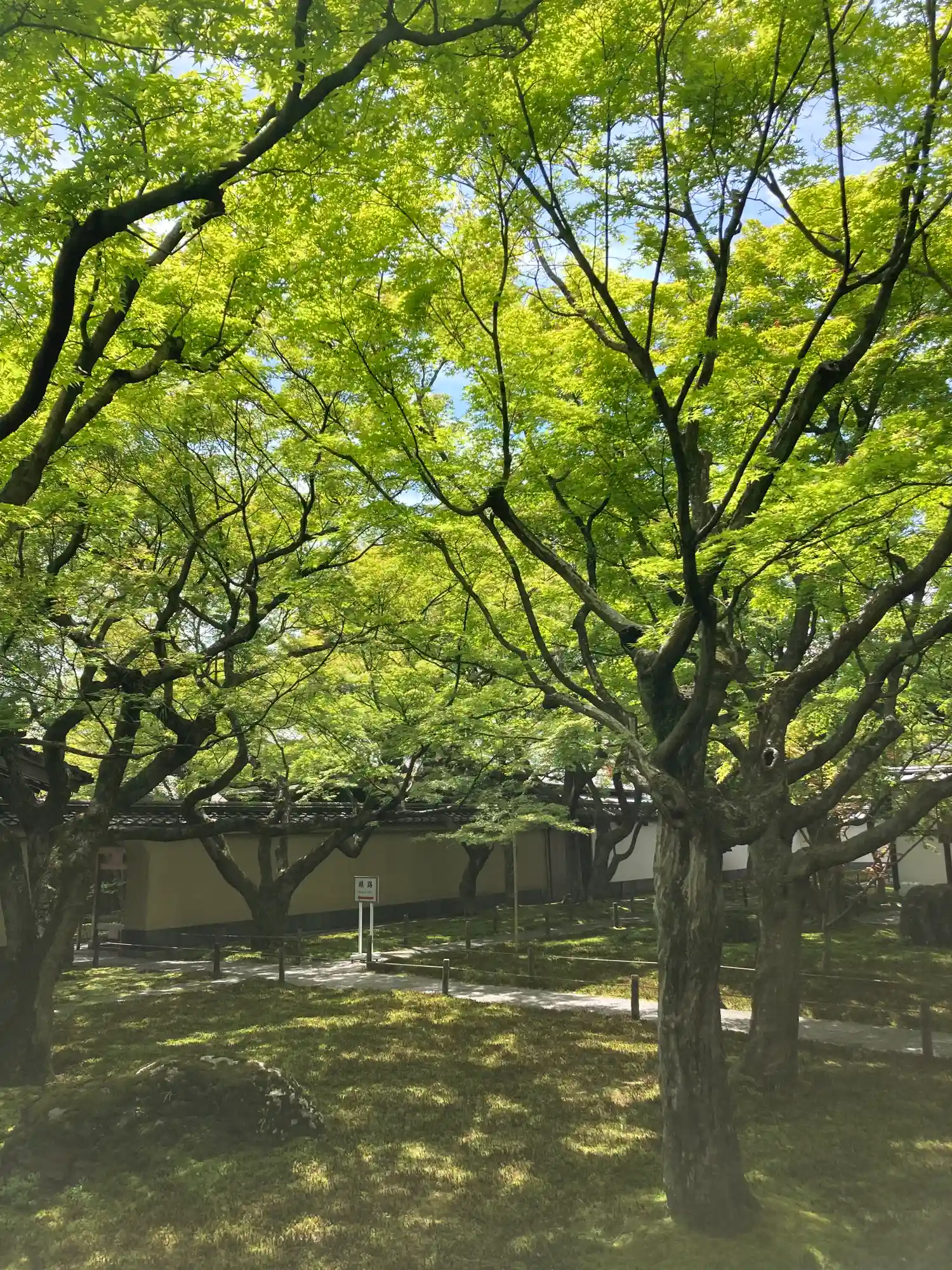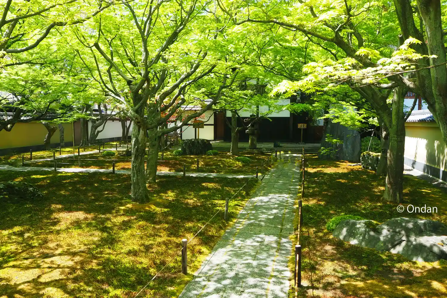 表門から石畳の道を通って受付へいきますが、この間は写真OK。これぞ木漏れ陽。