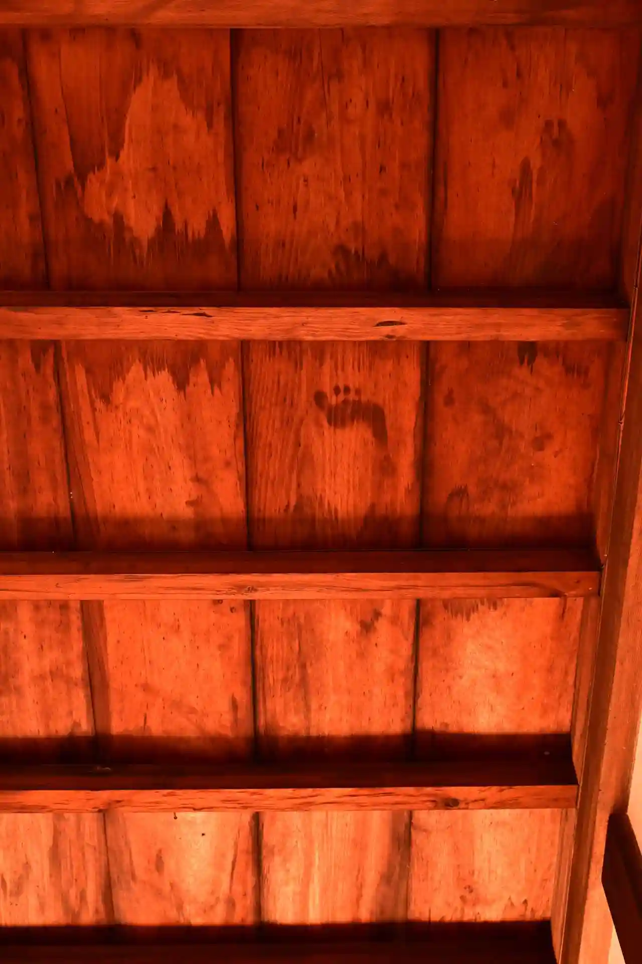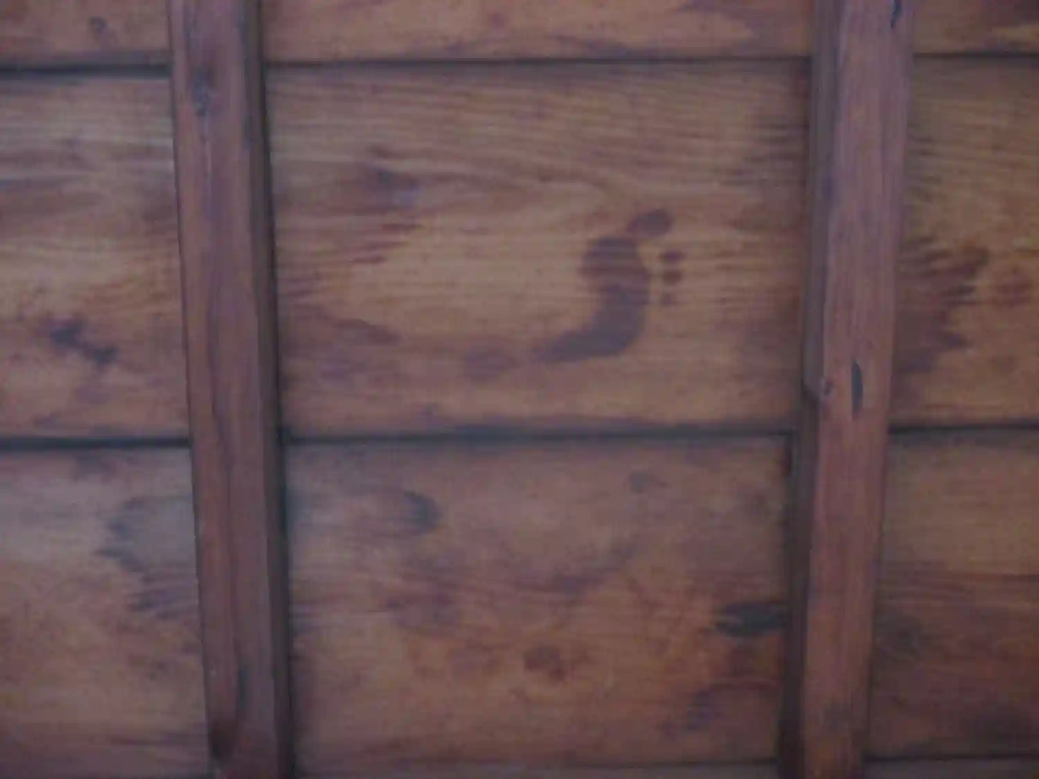 元は伏見城の床板で、天井板として使用することで供養しています。1600(慶長5)年の伏見城の戦いで徳川軍の鳥居元忠らが石田三成に破れ自刃したさいの血痕、血による足跡が残っています。