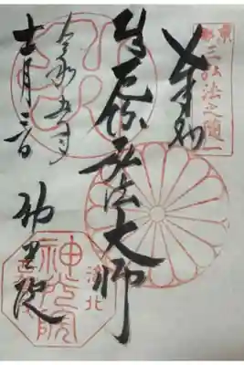 梵字や菊をモチーフにした印に、「厄除弘法大師」の字の御朱印です。 | |||