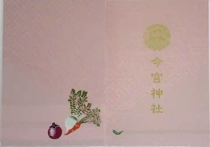 裏面は社紋と「今宮神社」と金色で表記されて、左下にぽつんと伏見とうがらしが描かれています。
