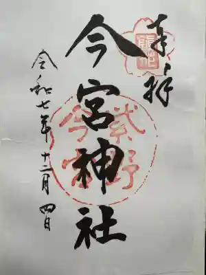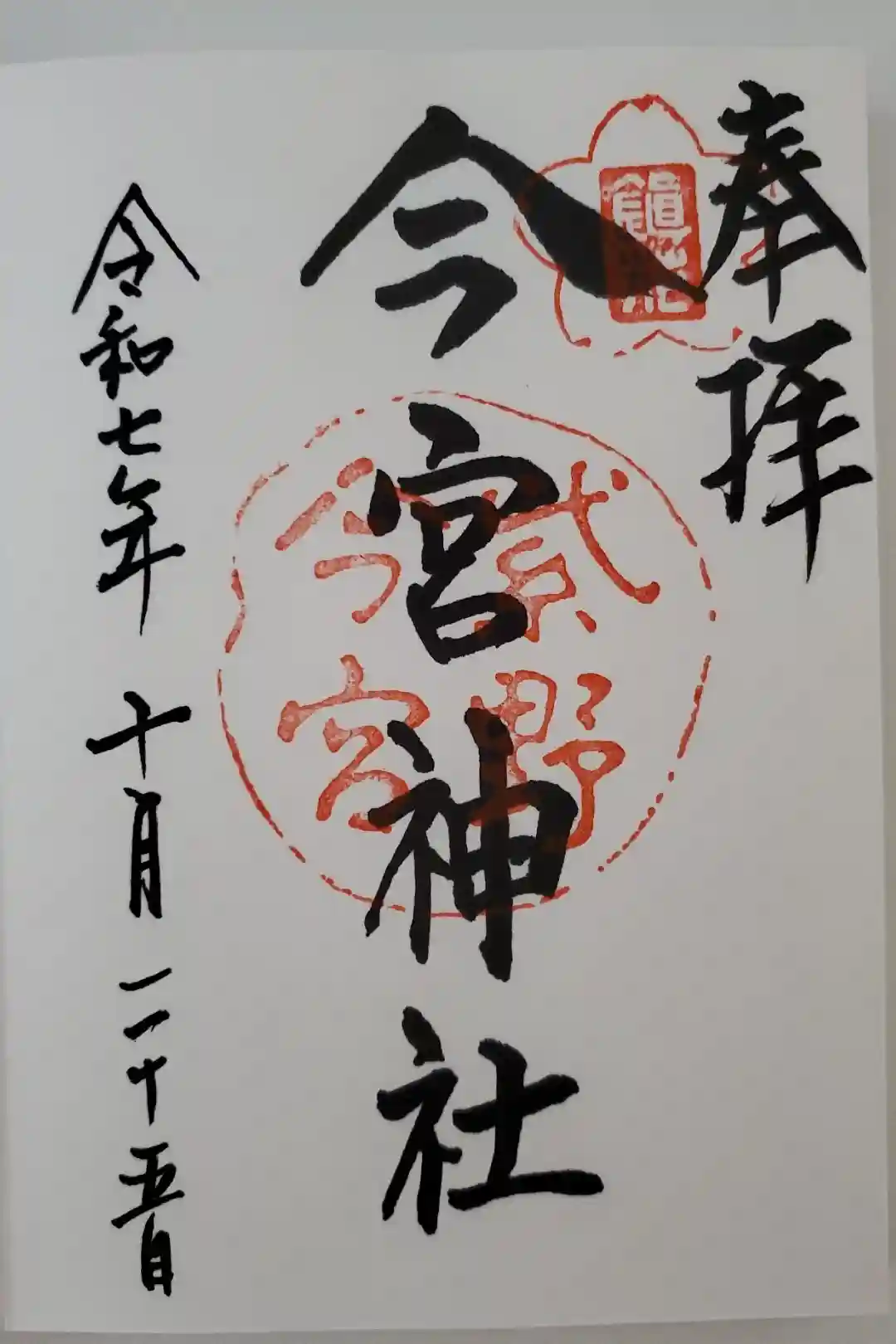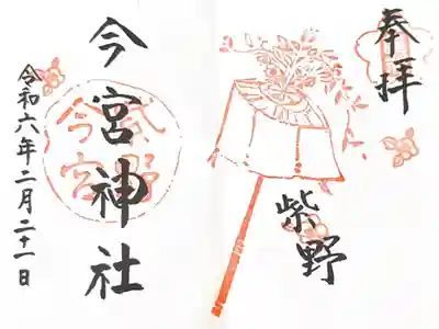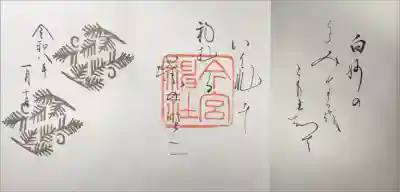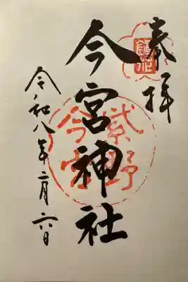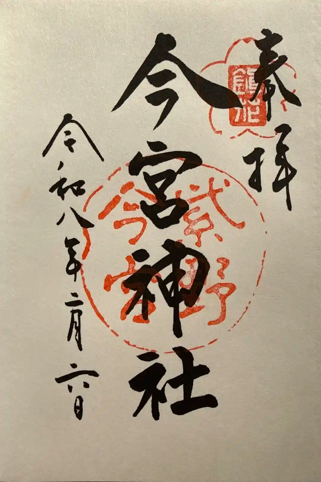 印に重ねるように右に「奉拝」真ん中に「今宮神社」と墨書きされています。
