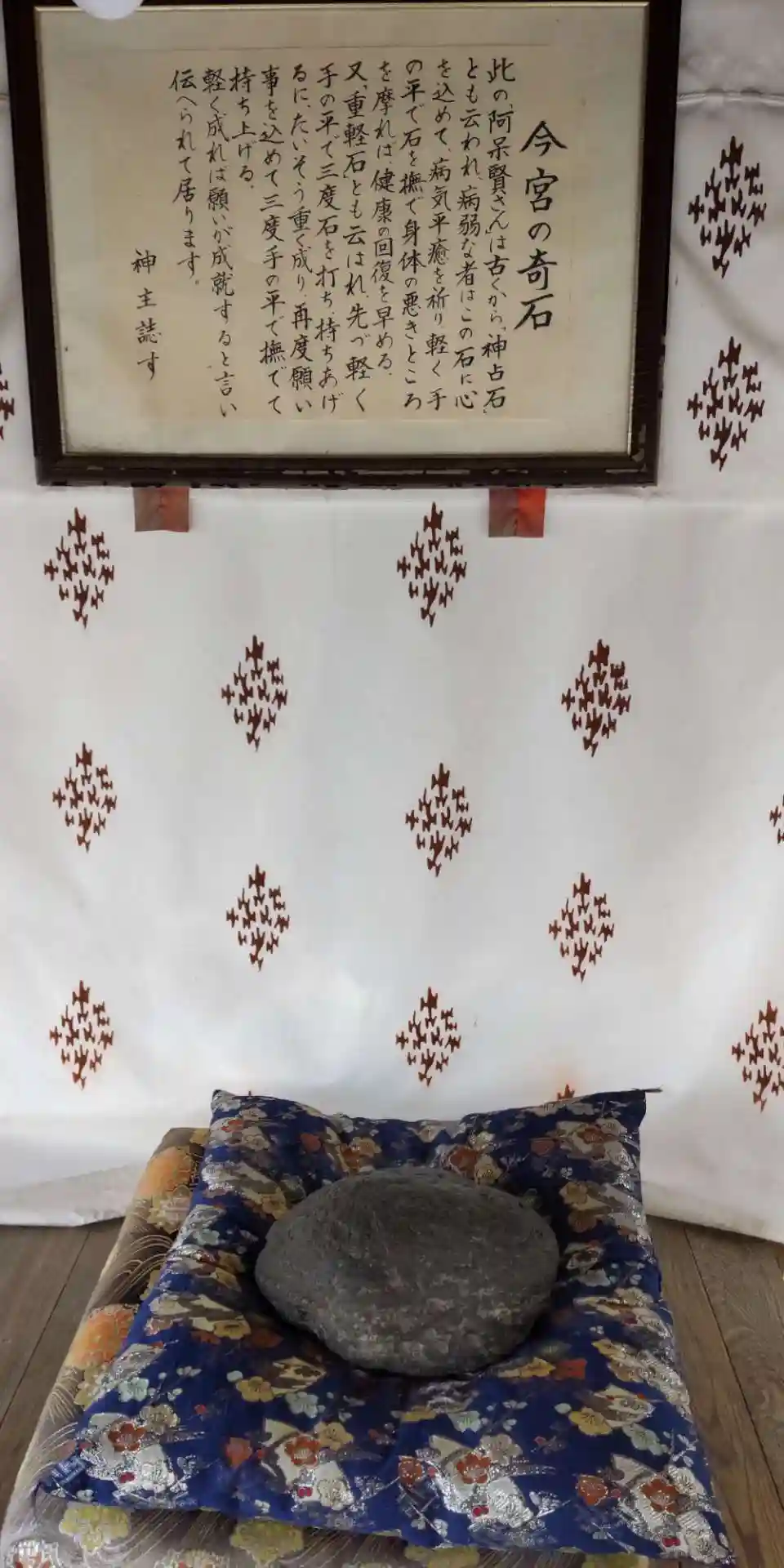 阿呆賢さん この石を手の平で三度たたいて持ち上げ、次に願いごとを心の中で唱えながら三度手の平で撫で、再び石を持ち上げてみてください。その時最初に持ち上げた時よりも軽く感じれば、願い事は叶うといわれています。 いわゆる「おもかるいし」?