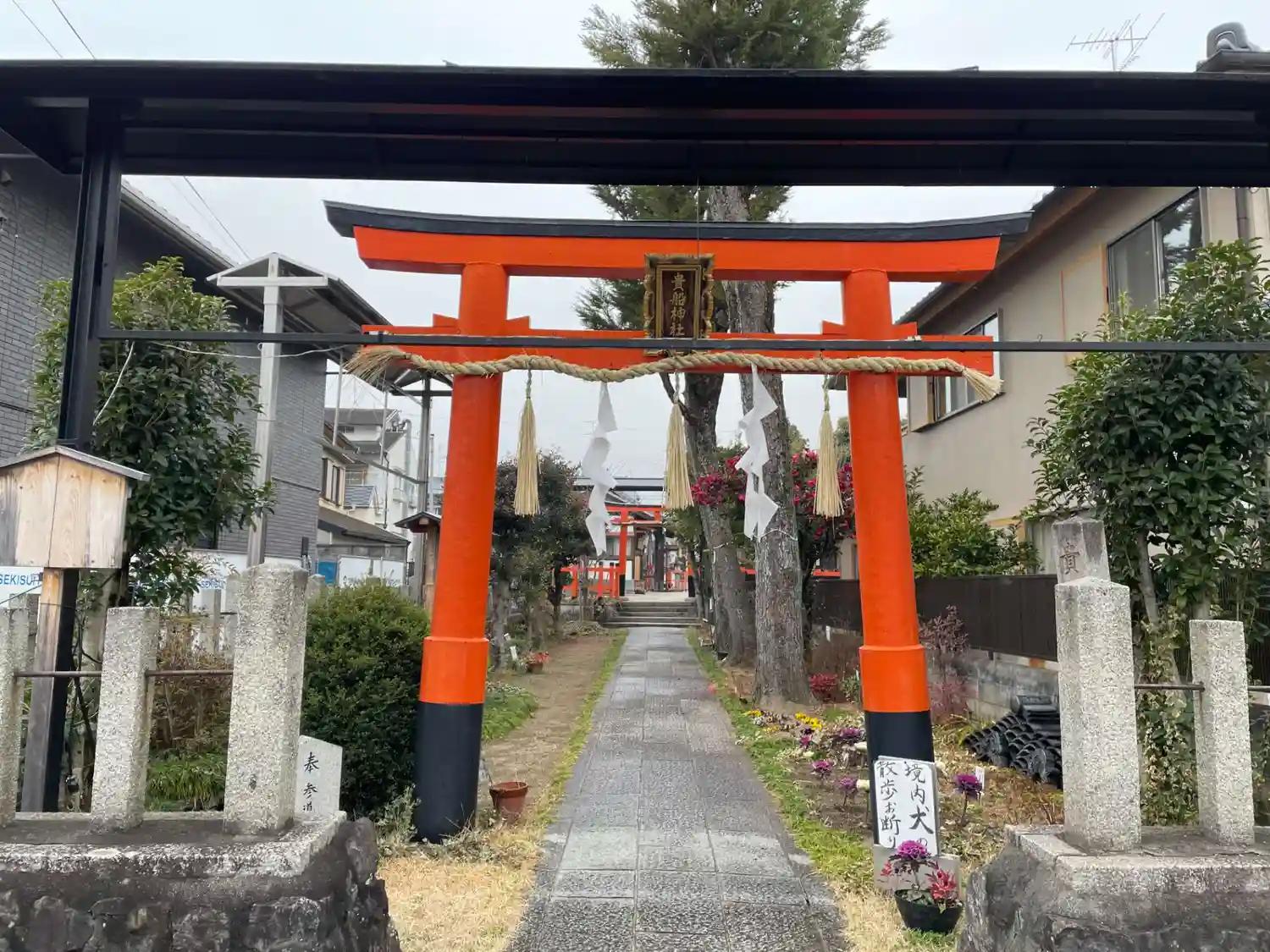 大徳寺参詣の帰り、紫竹エリア散策中に発見。上賀茂神社の境外摂社。境内にはお神輿も