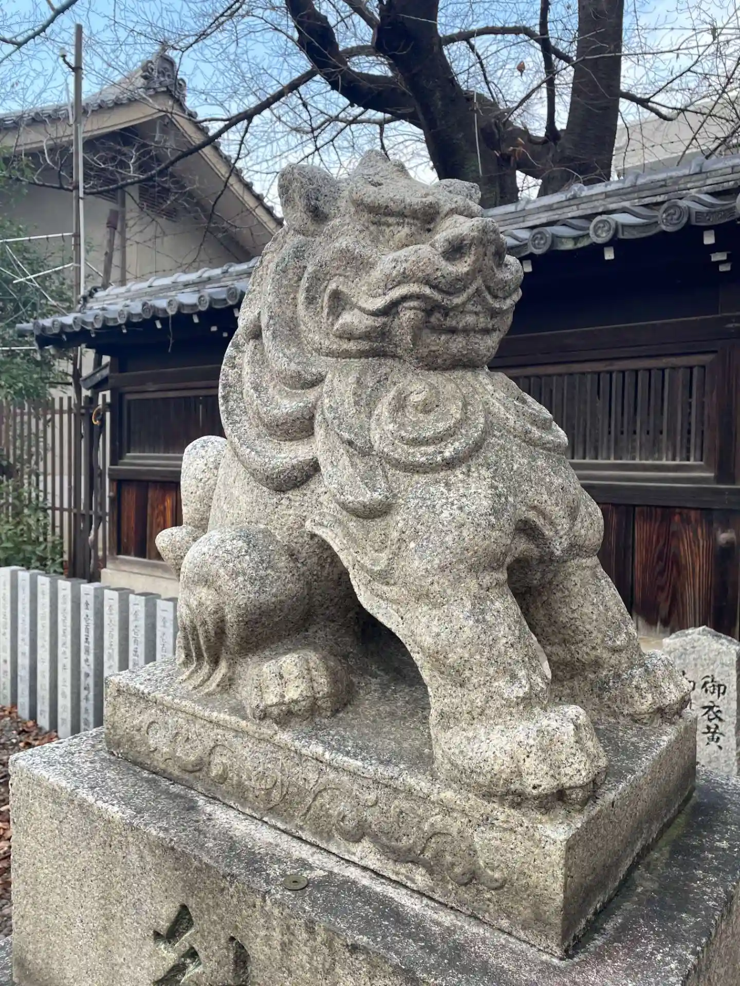 狛犬は新しくて 前足が伸びています