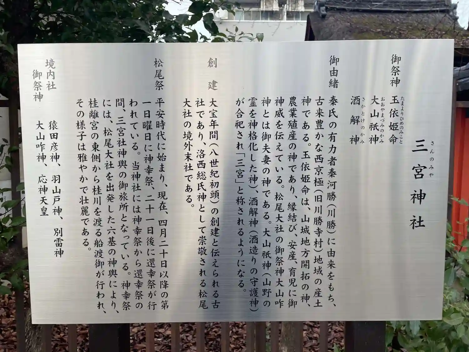 鳥居の扁額には松尾三宮社とありました