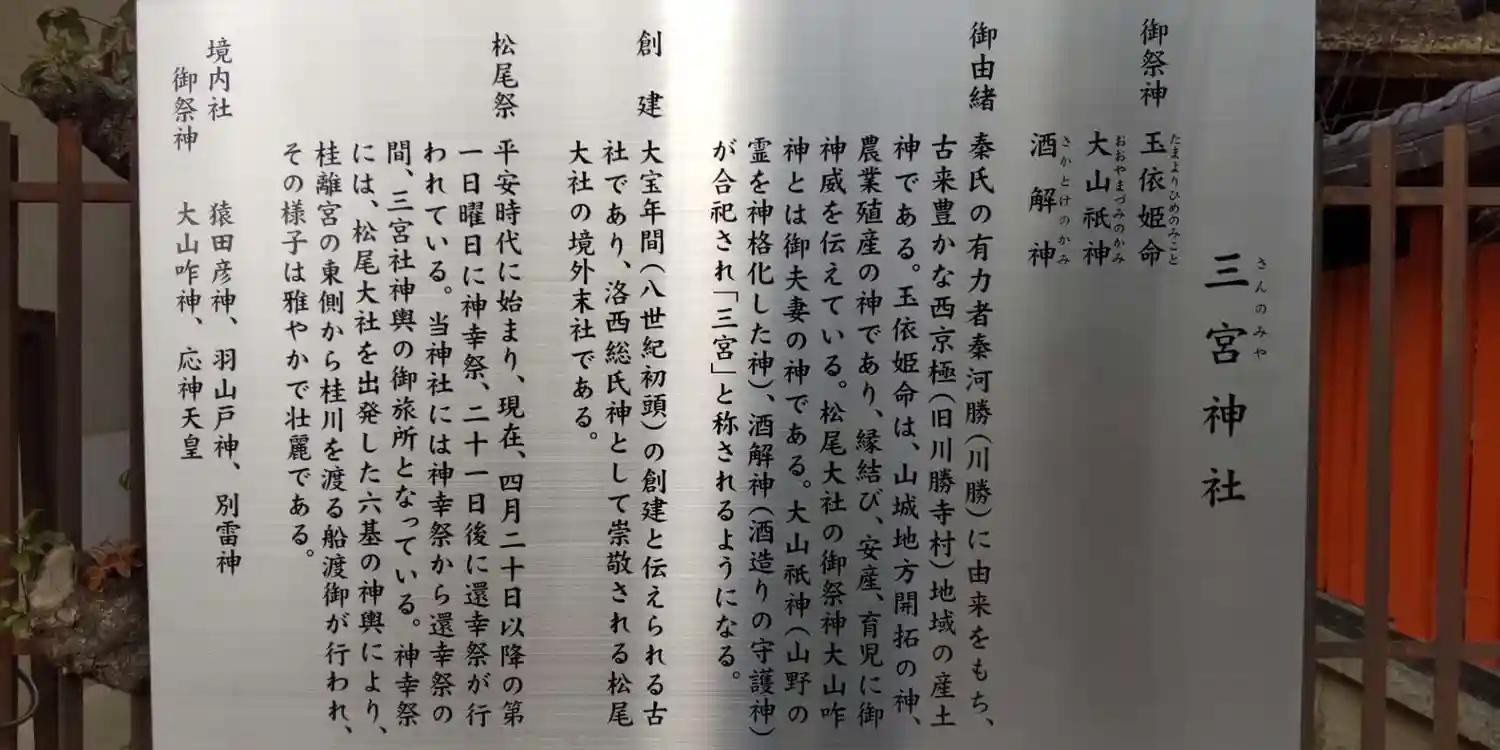 鳥居の扁額には松尾三宮社とありました