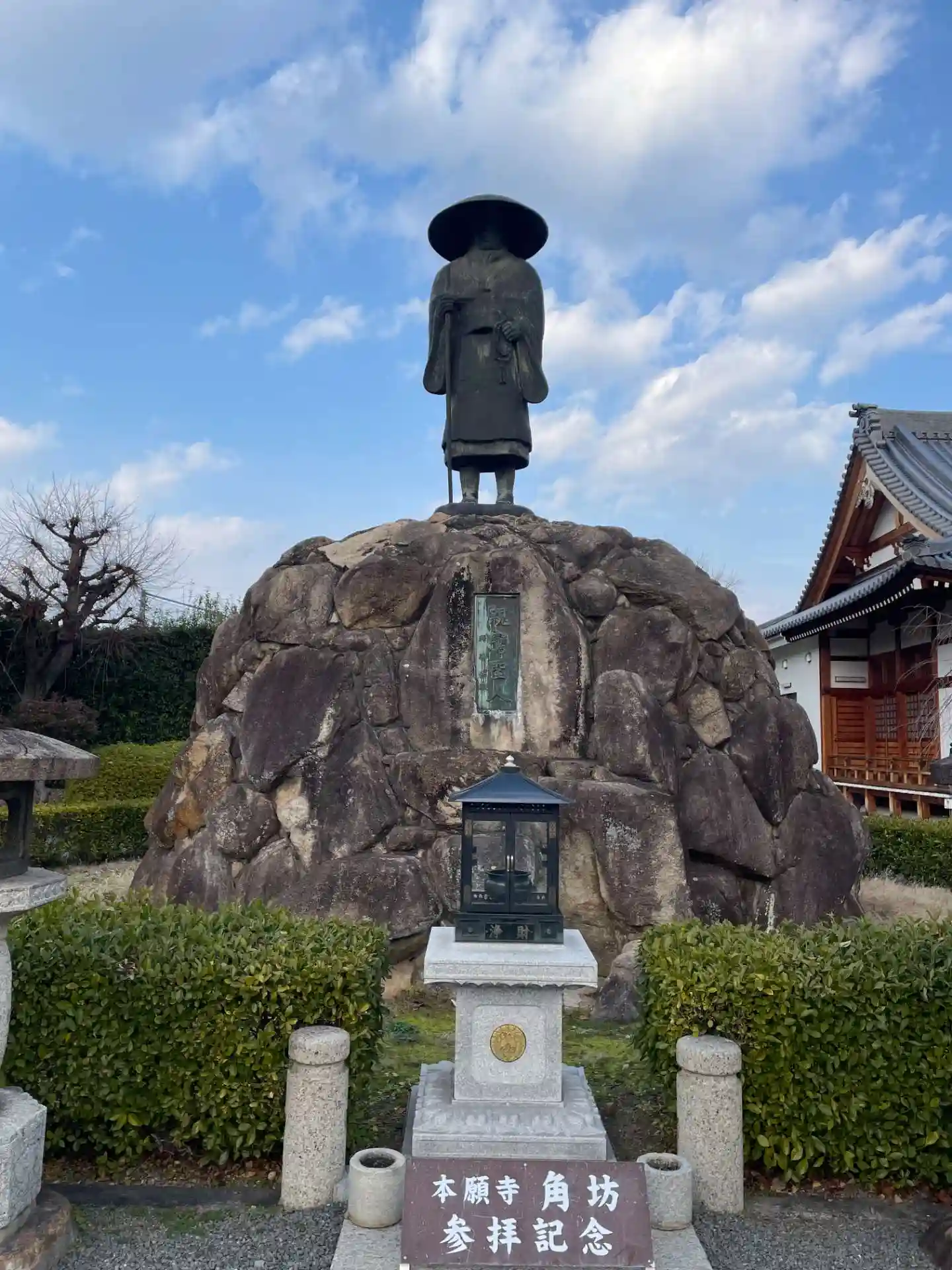 こちらは団体での参拝があるようで 親鸞聖人像の前に 「参拝記念」の文字がありました。