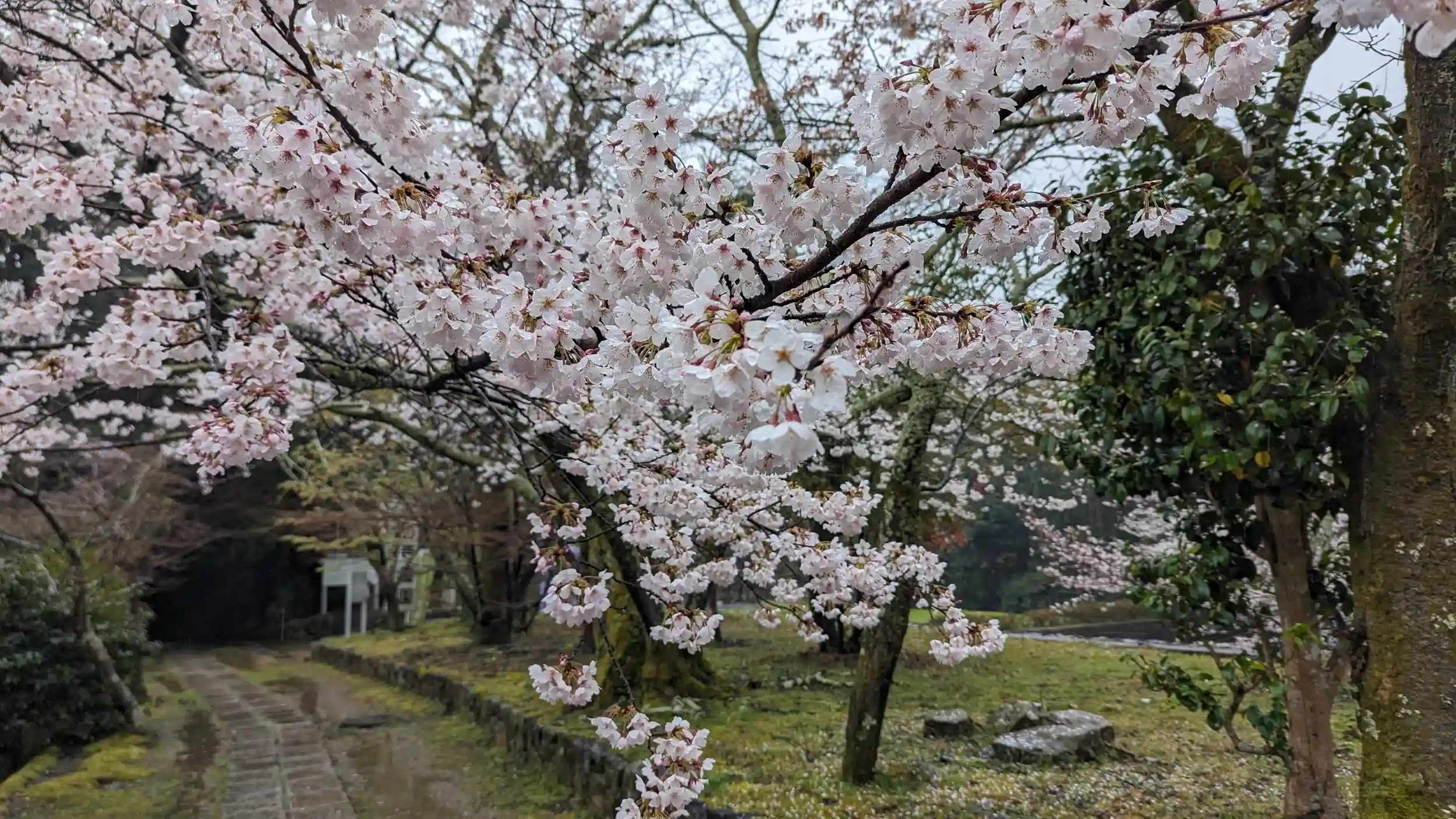 花の寺の名に恥じぬ、見頃を迎えた勝持寺の桜。車で山門近くまでいけますが、仁王門からの登坂を登りきった霊園前の桜は感動するかも😍なので余力あるなら仁王門からの参拝がおすすめです🤗こんなに見事なのに雨だからかほぼ貸し切り状態でした😅西行桜も良きでした🤗問題は天気・・・🤣