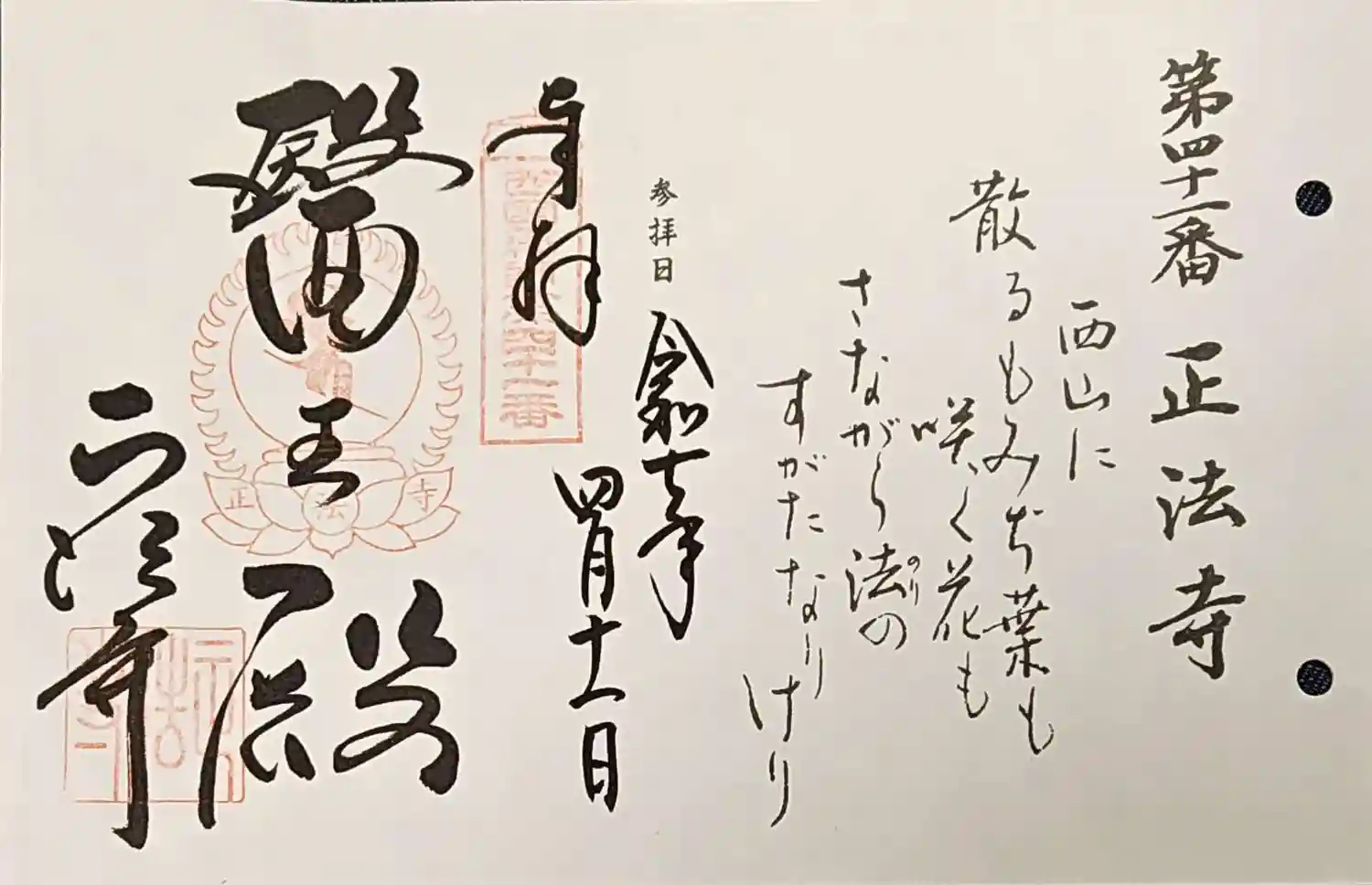 大原野に行くと間違いなく三セットになるのでもちろん正法寺さんもお参り。ここだけ桜の御朱印ないんです…