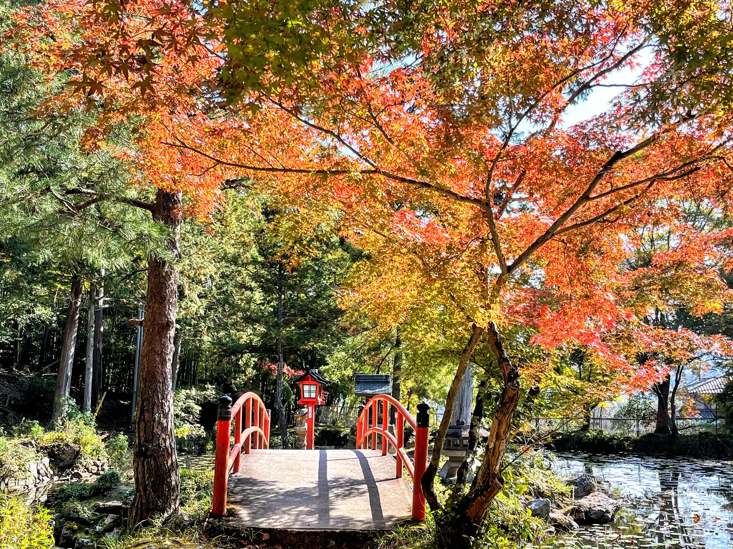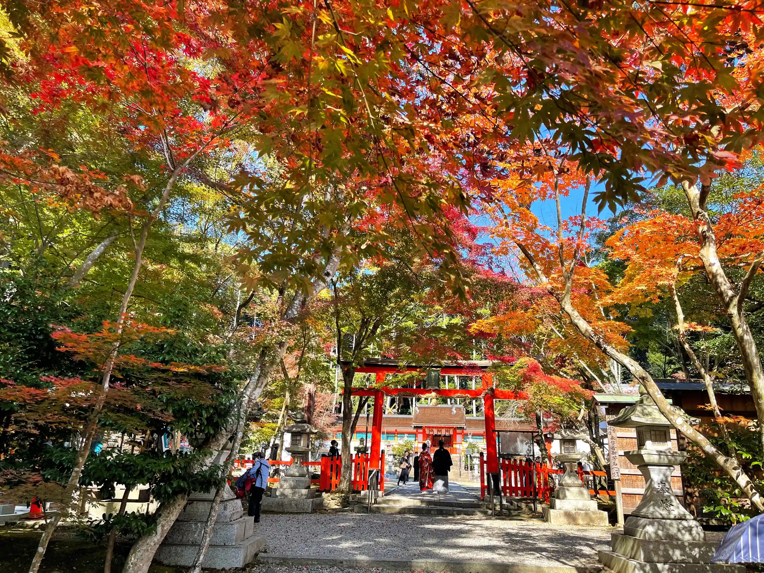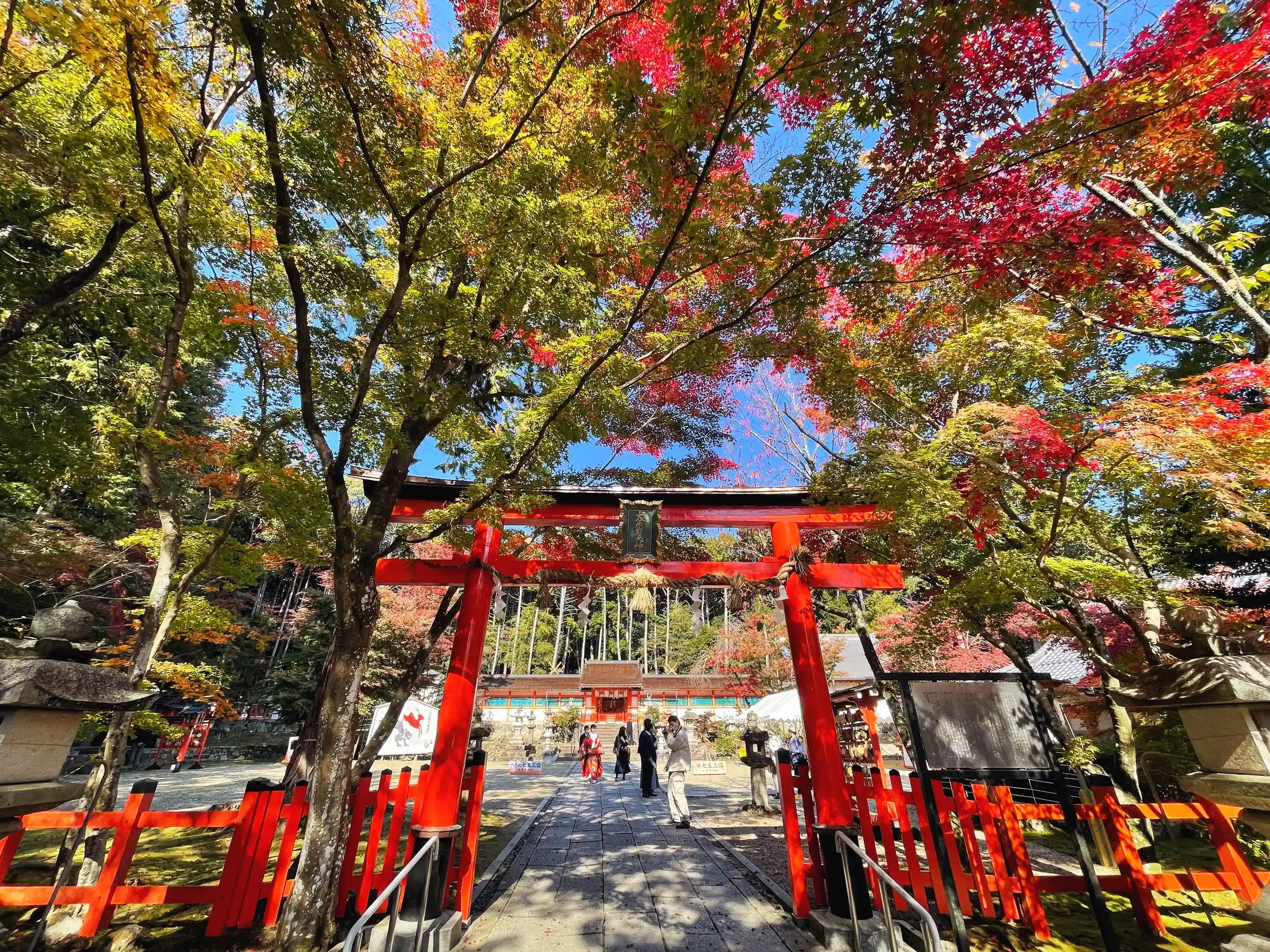 紅葉真っ盛り、結婚式、七五三祝いに、花を、いや紅葉を添えていました
