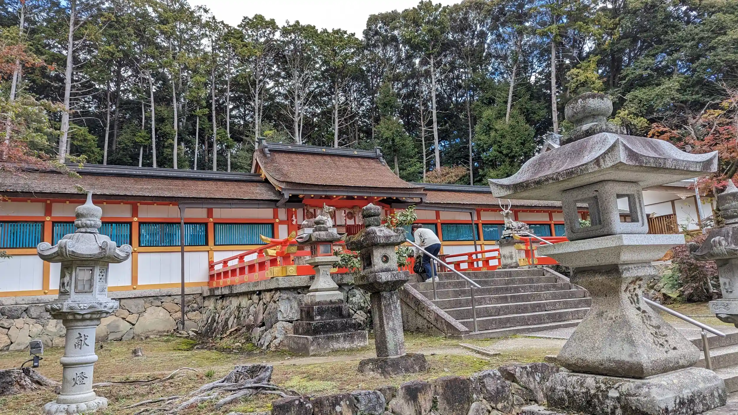紅葉めぐりで大原野神社。到着してあれ?鳥居すぐの楓はまだ青葉・・・進んでいくと池周りぐらいから紅葉がチラホラ。まあ思ってたよりは紅葉してたかな?ただ人も多い・・・😅