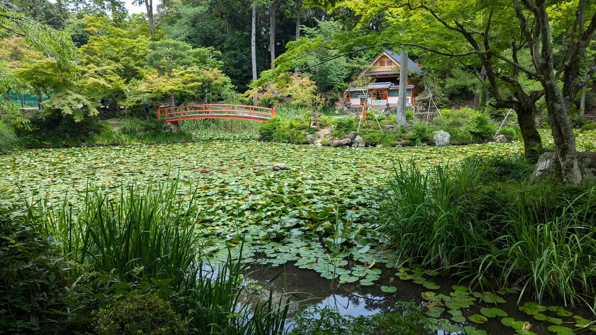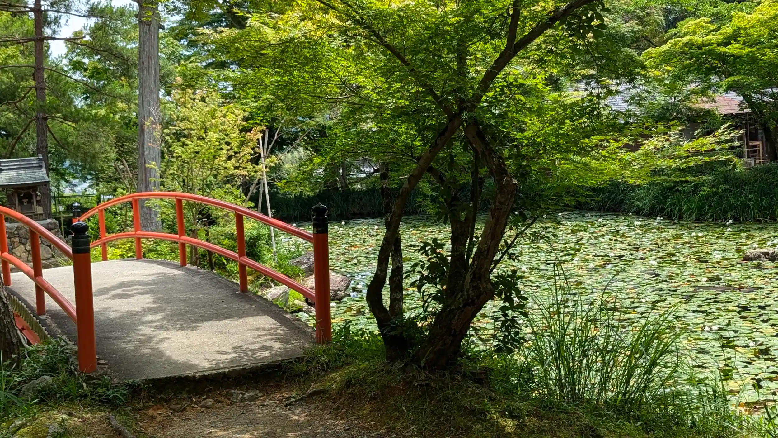 大原野神社もこのシーズンは初。青もみじも涼し気に、「モネの睡蓮の池」とまで言われる鯉沢の池の睡蓮が見頃を迎えてました🤗参拝終えて社務所に向かおうとしたときに本殿前で思いっきりコケてしまい、近くにいた参拝の御夫婦と宮司さんに応急処置をしていただくことに・・・😥せっかくのお参りの折に申し訳なく、感謝しきりでした。これも縁なのかなにかの暗示か・・・老化かなぁ・・・😅紫式部の御朱印帳が出てましたが持ち合わせがなかったので今回は断念。次回にあれば拝受しようかな・・・秋は厳しいかな😅