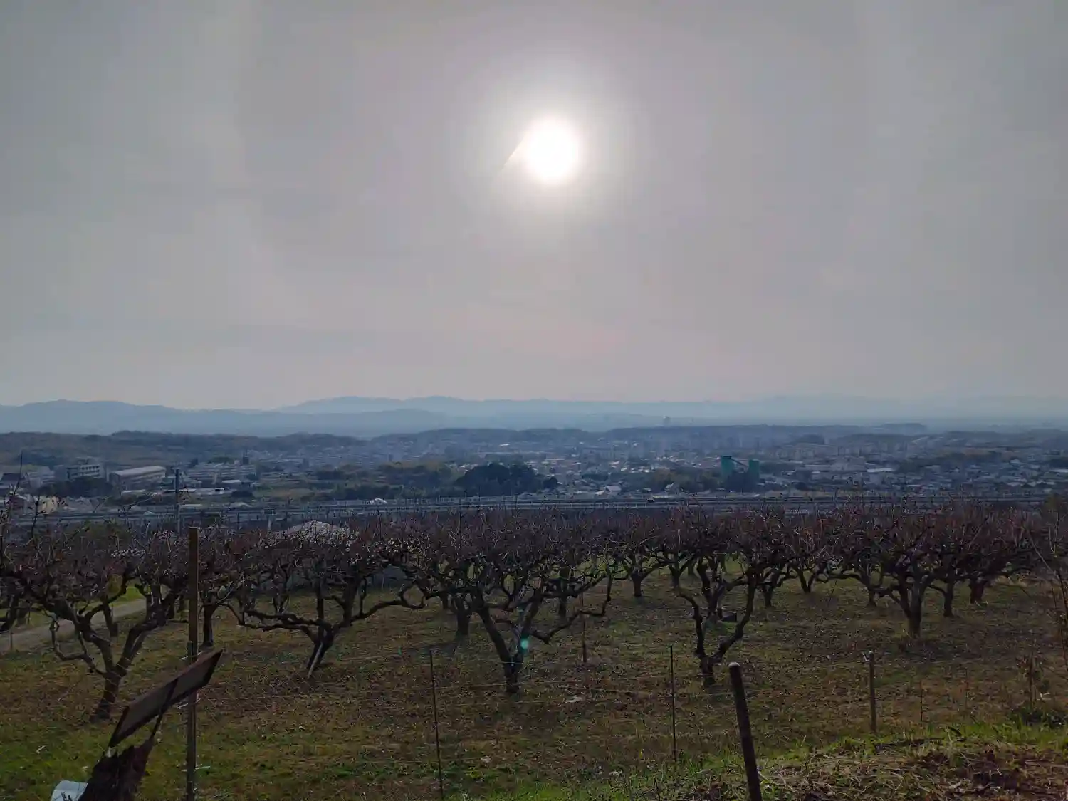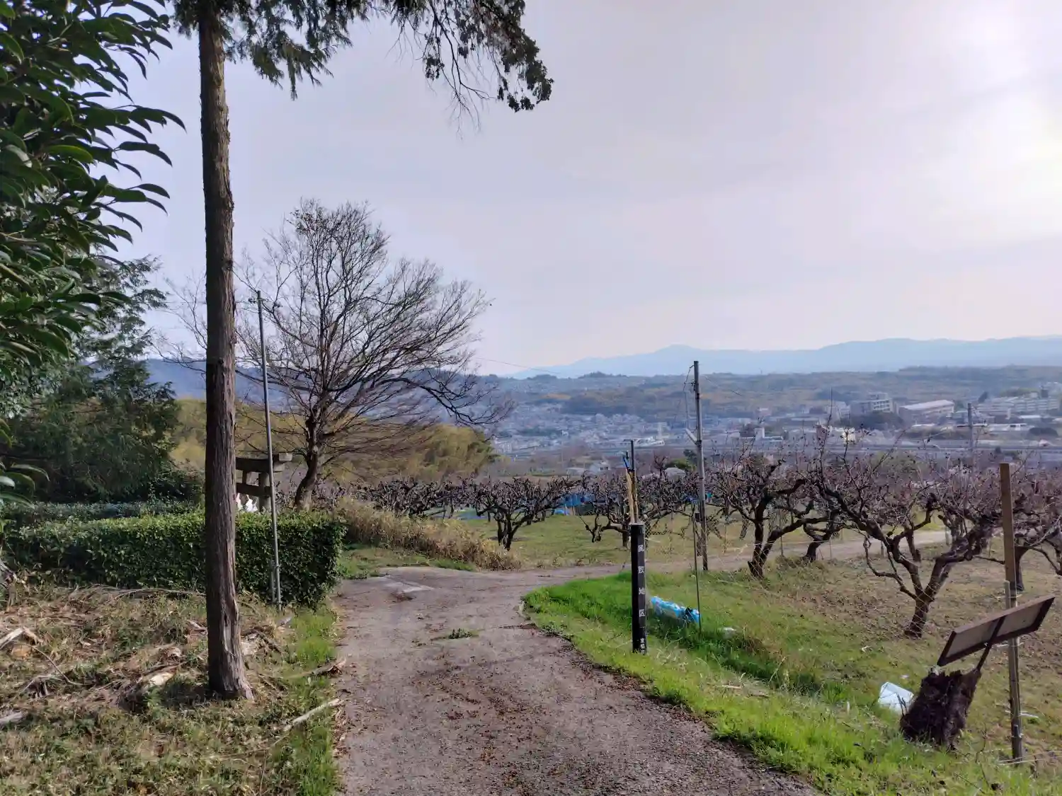 鳥居の横から市内を望む。