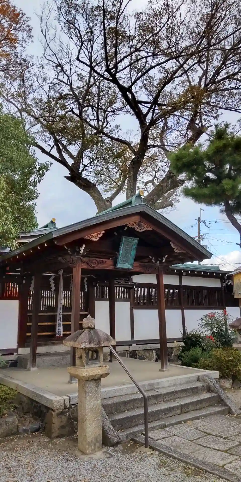 桂辺りで住宅街をクネクネ走っていて公園かと思いきこちらの神社でした。御神木がムクの木が幹が太くとて…