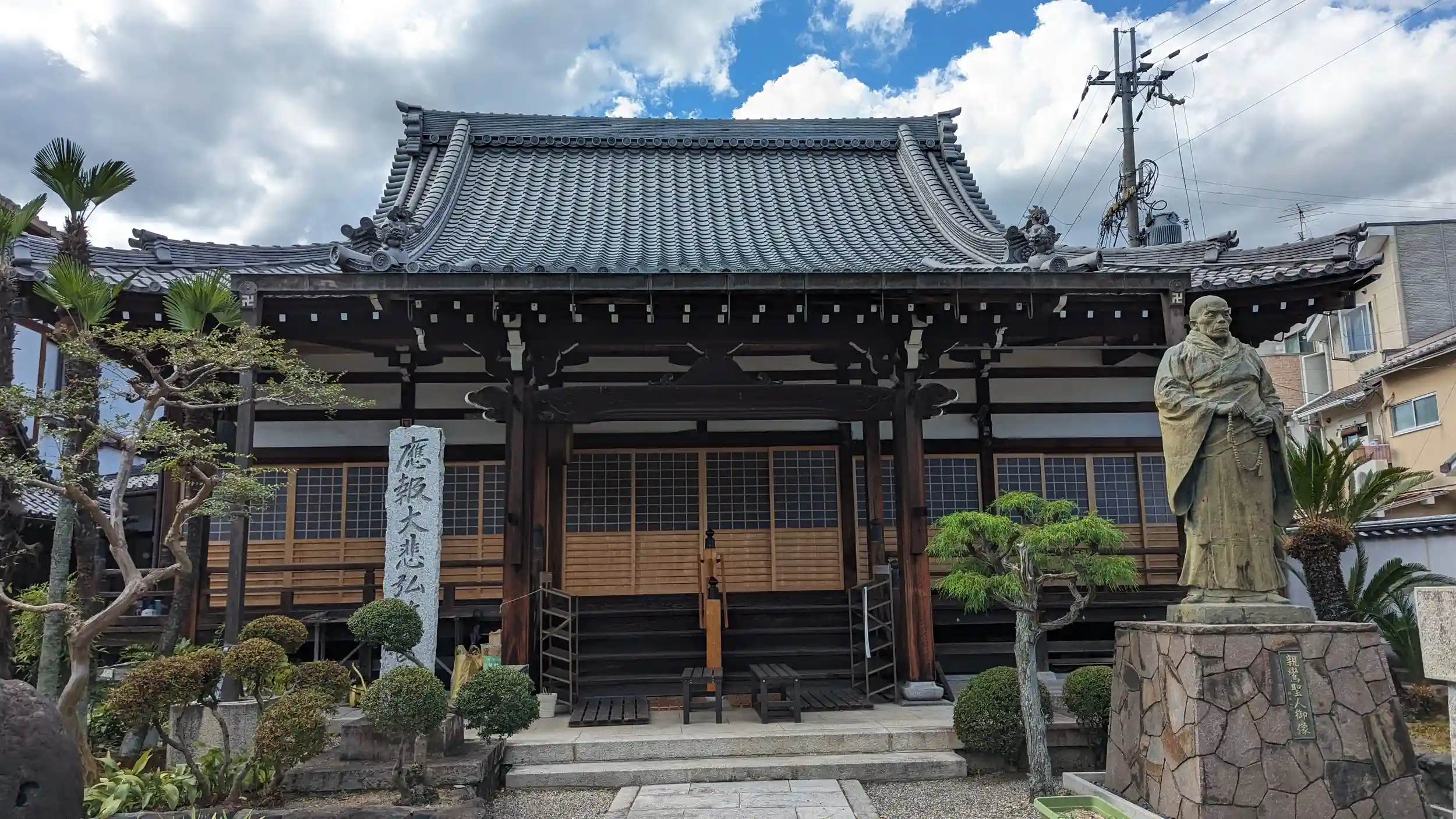 地蔵寺から阿弥陀寺へ向かっていると立派な石柱と山門。本堂前にはこれまた立派な親鸞聖人像が佇んでおられました😳本堂前にてお参りさせていただきました🤗