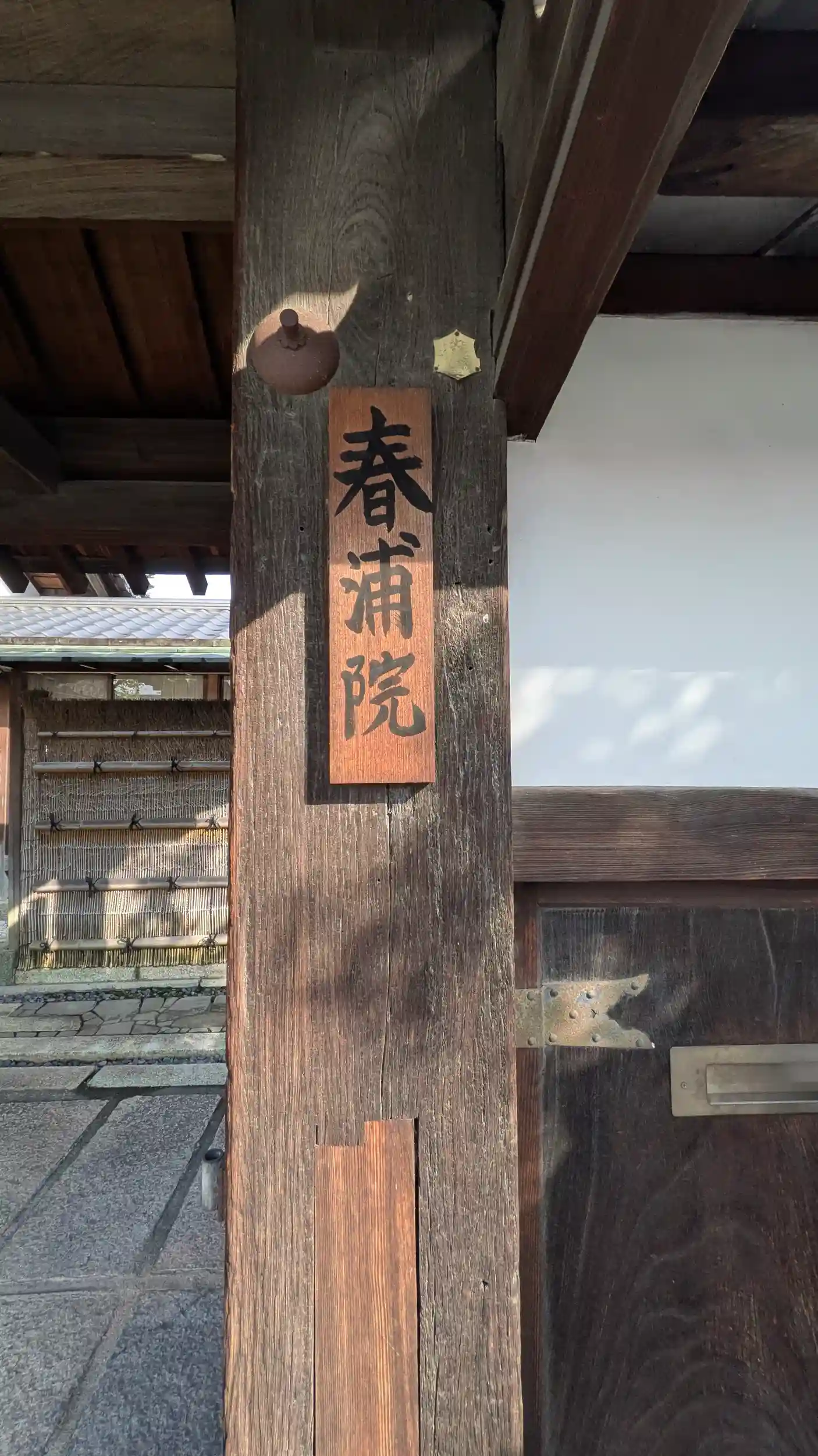 妙心寺境外塔頭の春浦院。山門は開いておりましたが拝観・御朱印はされていないとのことでした。山門に由緒書きのパンフレットがあったのでいただいたのですが、これがなかなかの優れもので妙心寺山内図には四十六塔頭が載っており、この後の妙心寺塔頭めぐりに大いに役に立たせていただきました😊