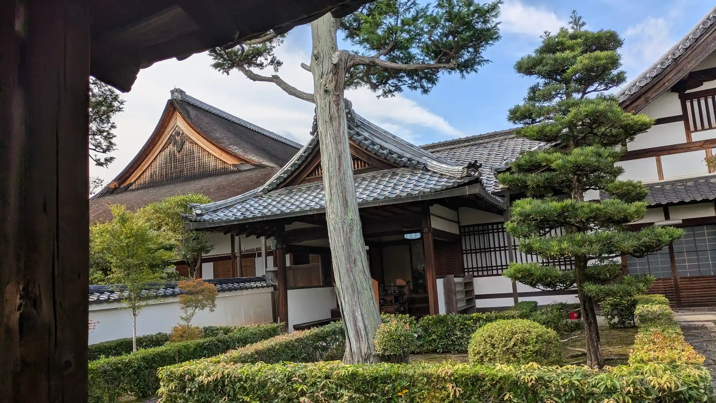 蓮池の西側に位置する塔頭。妙心寺中興開山の雪江宗深の創建。本堂は重要文化財。山門前に行くと草むしりをされている女性の方が居られたのでお声がけ。写真撮ってよいですかと尋ねると「中は行って近くで撮ってええよ」と境内に入らせていただけました🤗法事中とのことなのでさすがに堂内は無理でしたがありがたく庫裏の写真を撮らせていただきました。瓦の門が梅鉢紋のような丸が六個の紋。お聞きしましたがわからないとのこと。細川家の紋じゃないしなんだろうか…?気になるわ🤔お礼を言ってあとにしました🤗