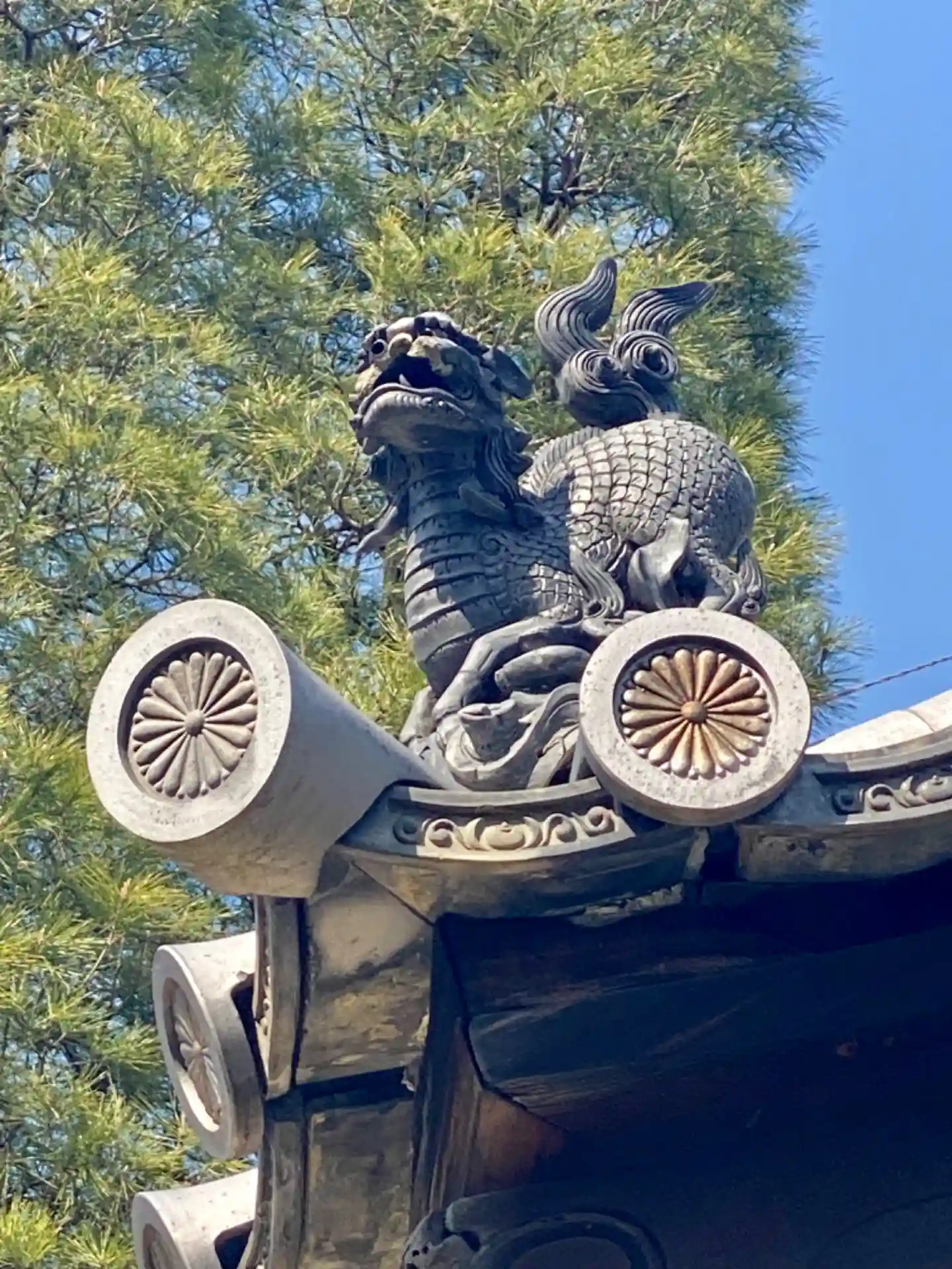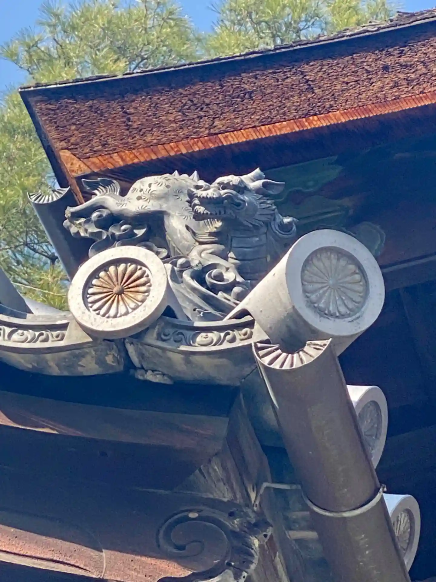 御所、南東を向いた側の鬼瓦は、火伏せの意味もあり…