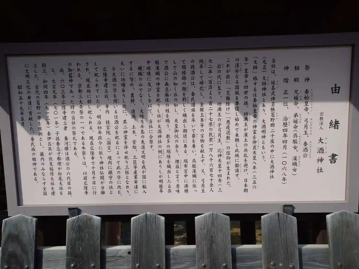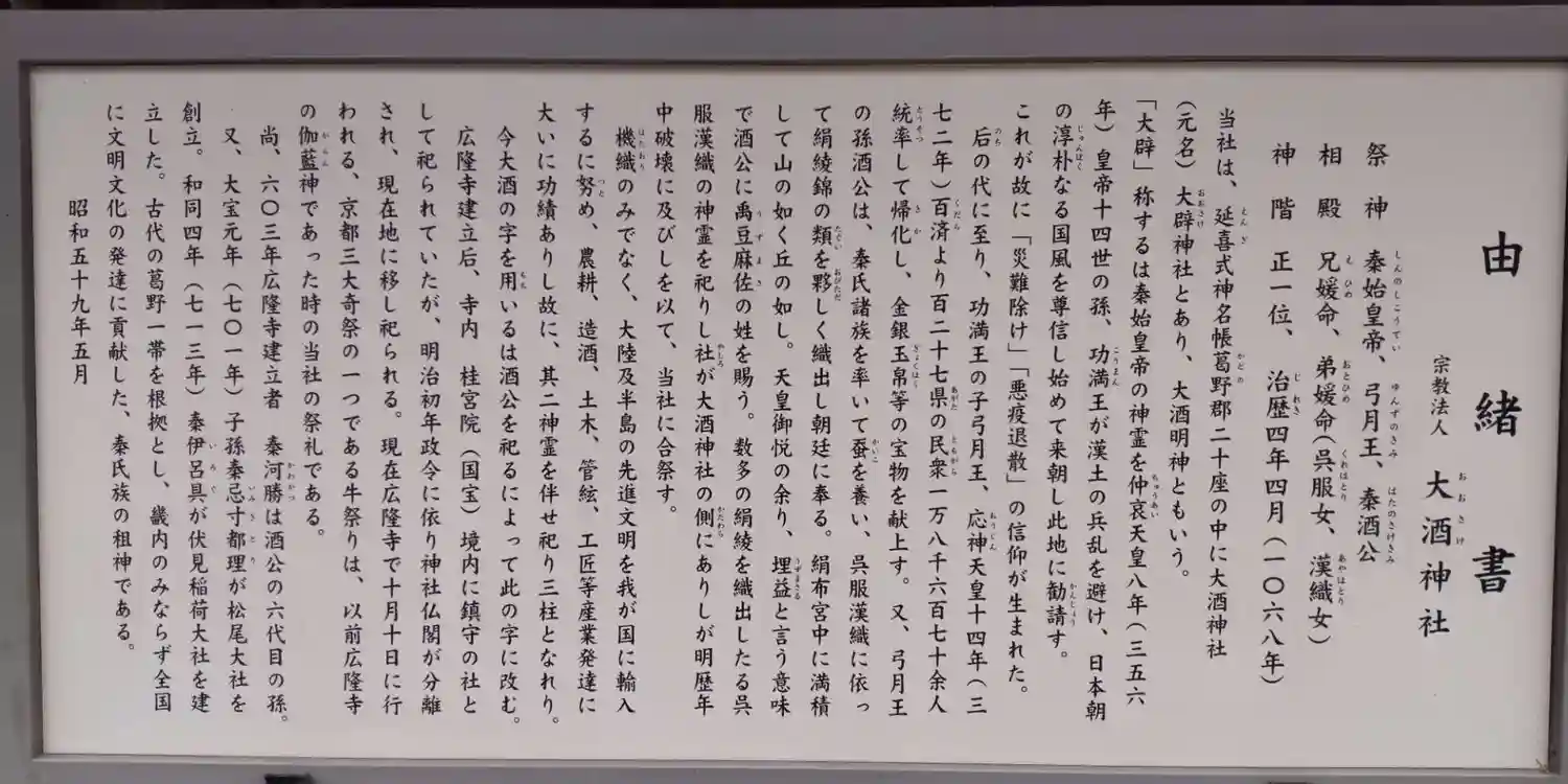 ご祭神は秦始皇帝、弓月王、秦酒公…