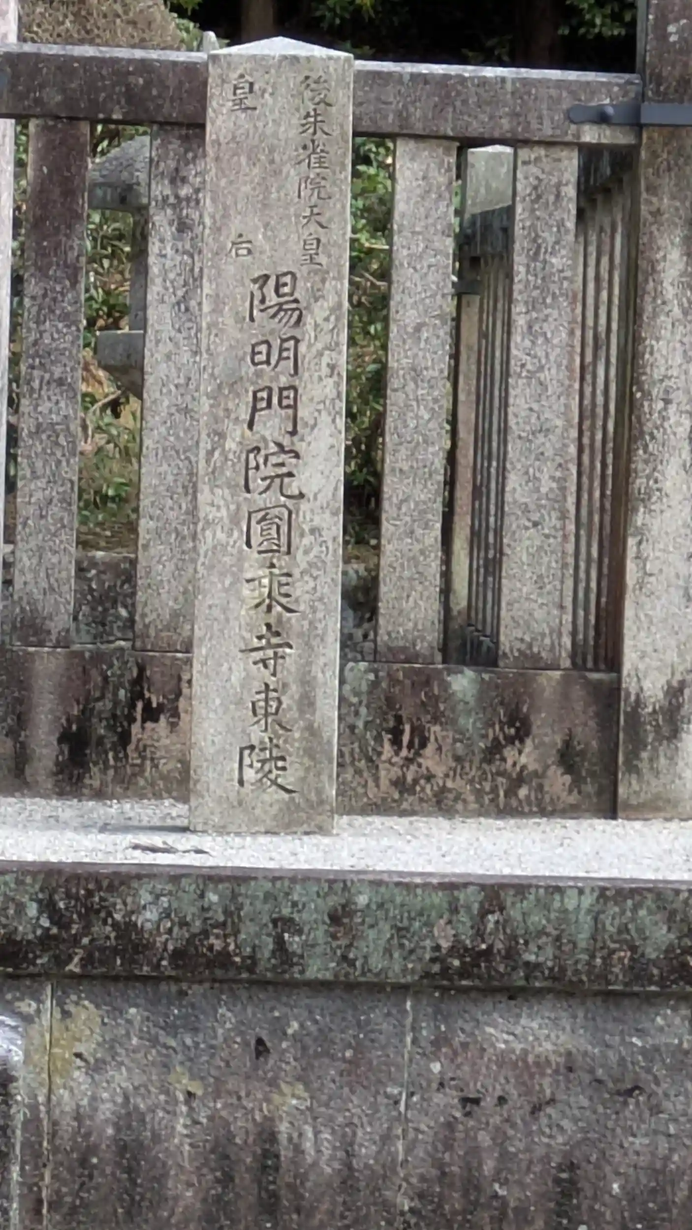 三条天皇の娘で後朱雀天皇の皇后である禎子内親王(陽明門院)の御陵。母は藤原妍子。参拝路としてはこちらが先にあるのですが女性の方が熱心にお詣りされていたので先に三帝の陵をお詣りしました。ちなみにネット情報では「龍安寺内」とありますが龍安寺駐車場から行けますので有料区間通らずにお詣りは可能です。