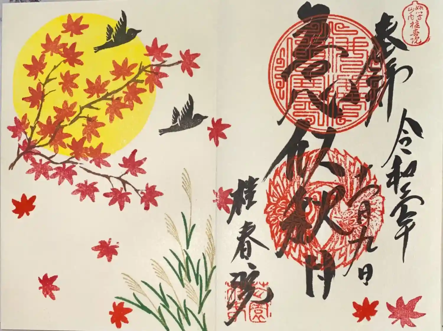 妙心寺塔頭の桂春院にて秋の御朱印(見開き)を頂きました。