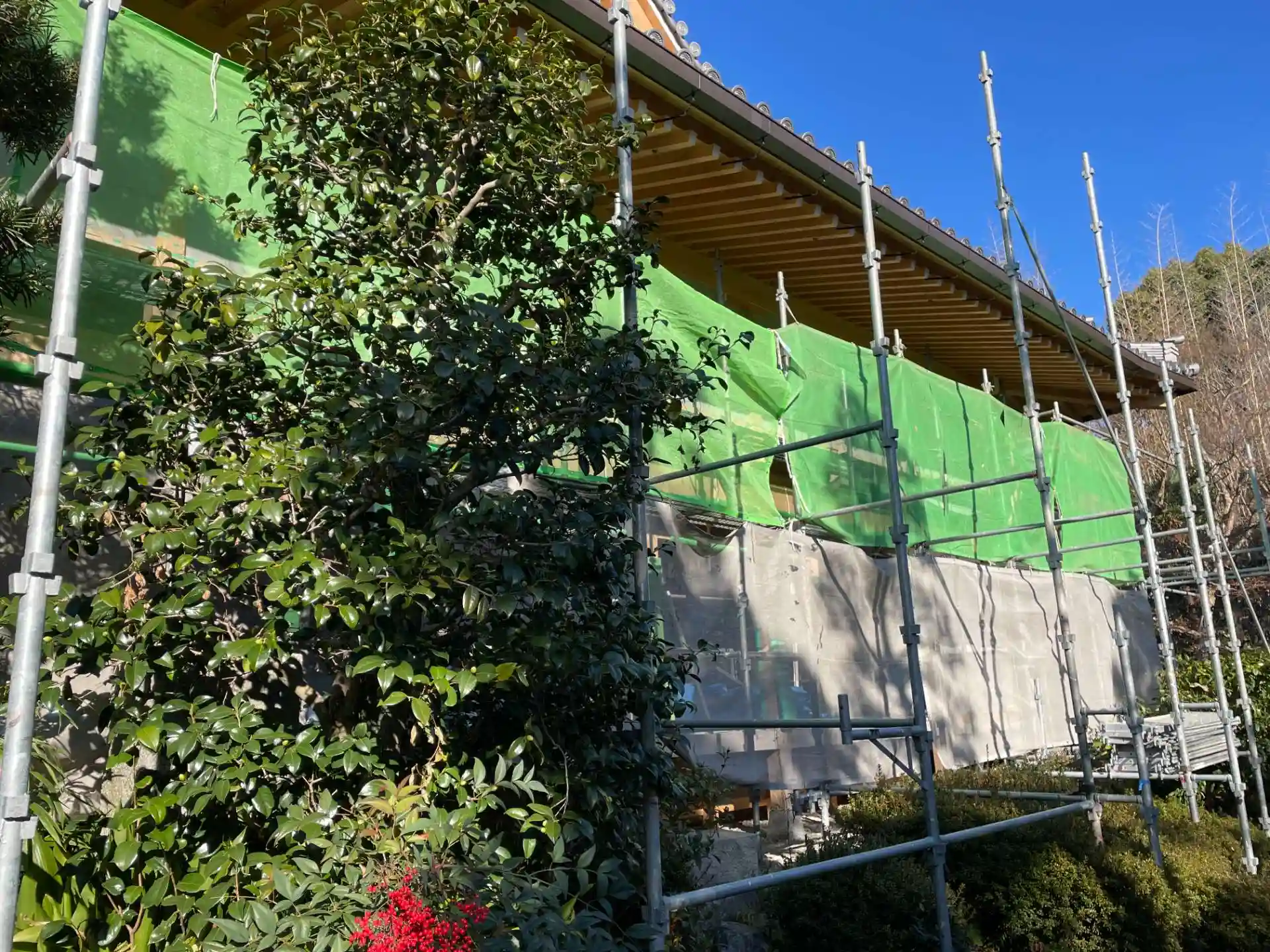 建築中の本堂のお話を伺うと 宮大工さんではないものの 専門の技術をもった方が工事されるので 2年以上かかっているとのことでした。