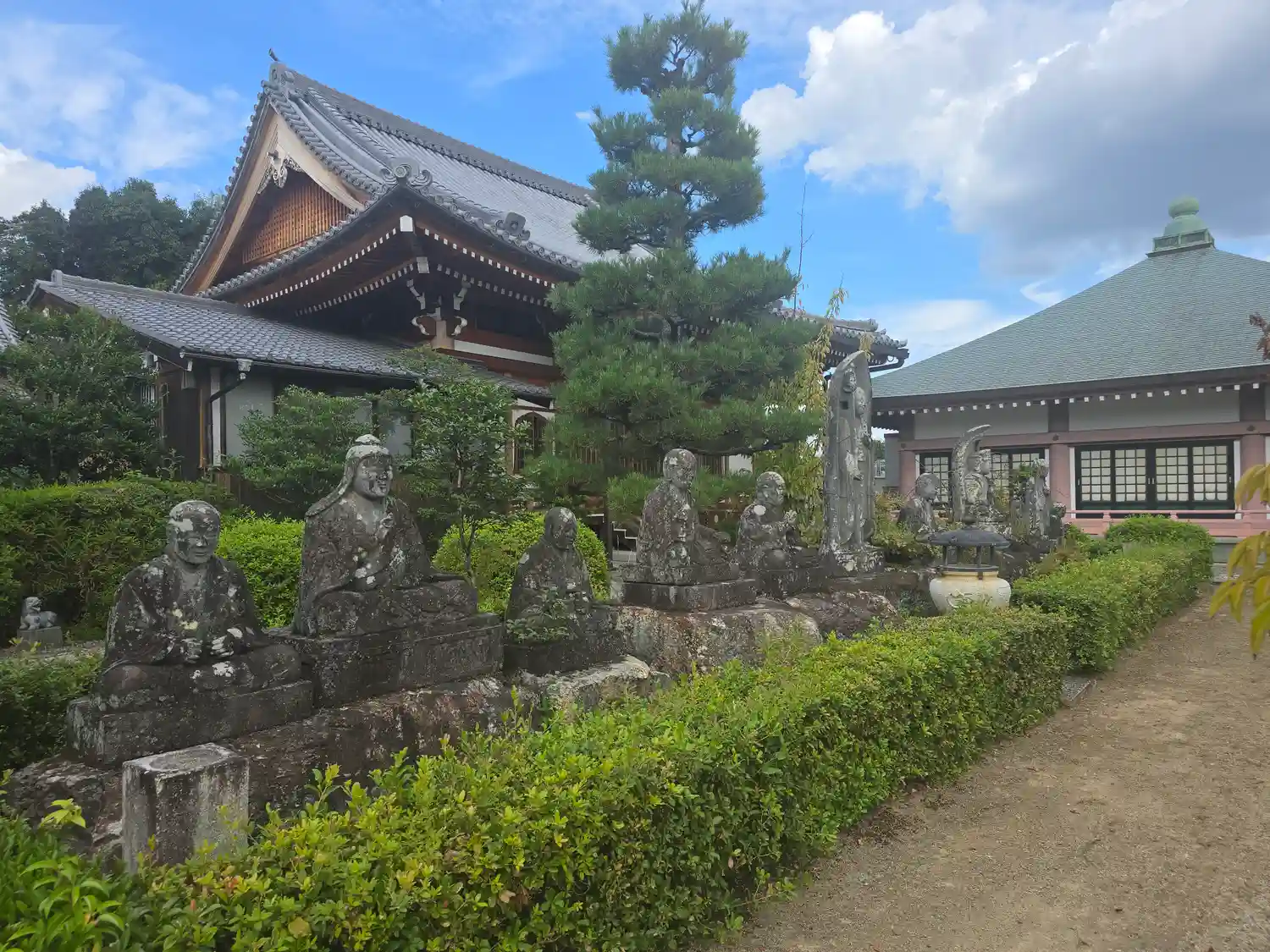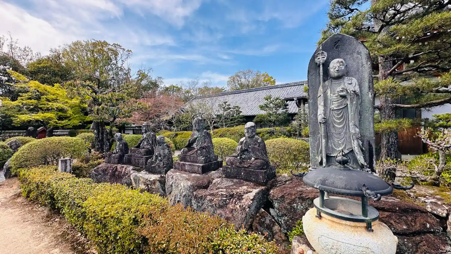 庭にいらっしゃる5体の仏像はとても古く歴史を感じ迫力がありました
