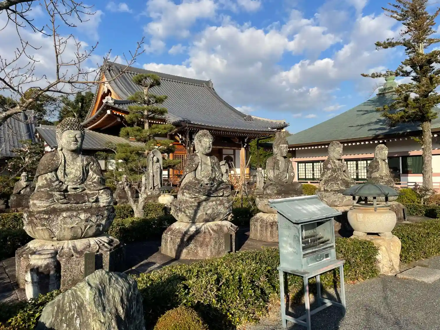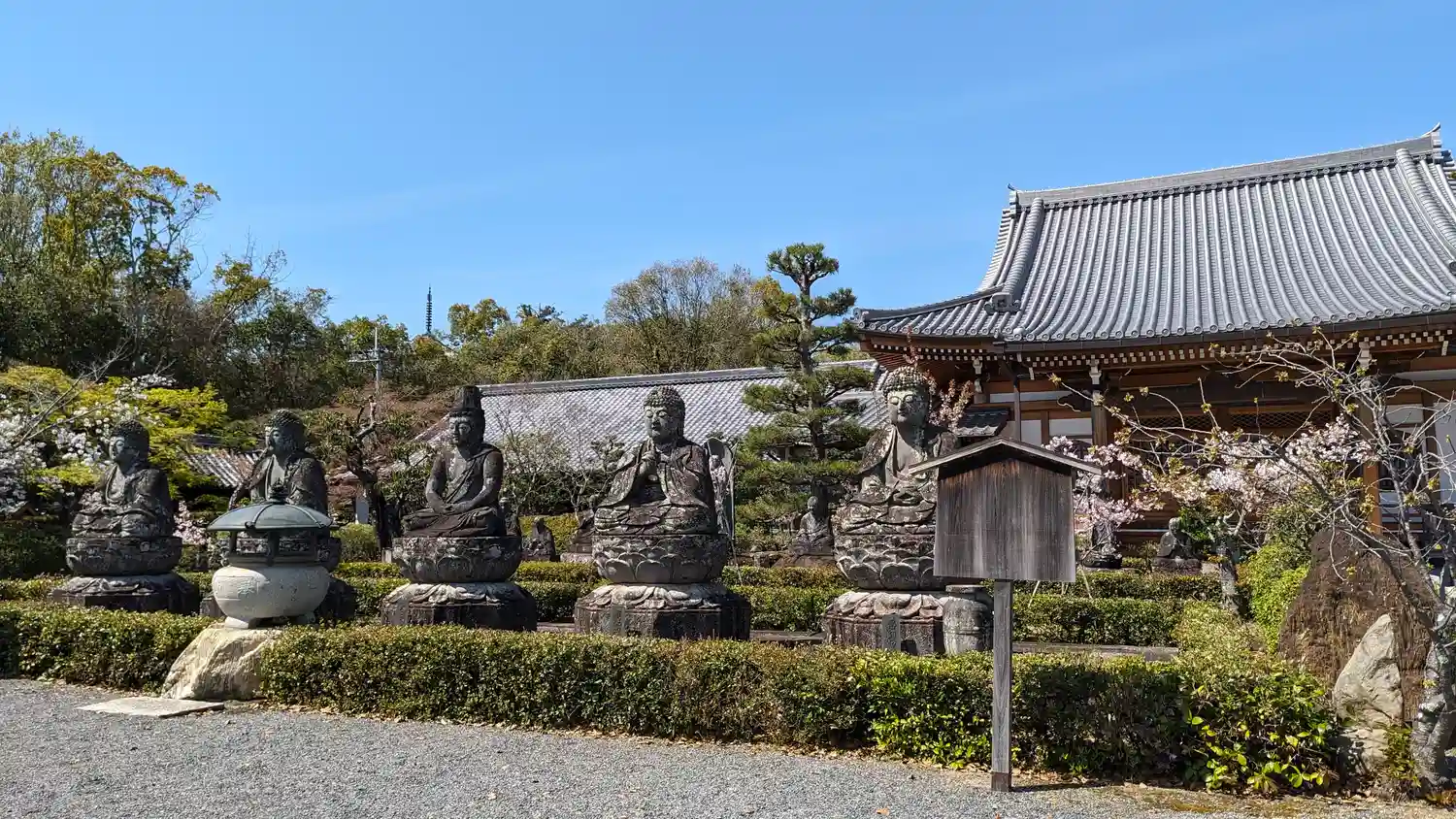 お庭には大日如来中心に五智如来と呼ばれるりっぱな石像が並んでました。