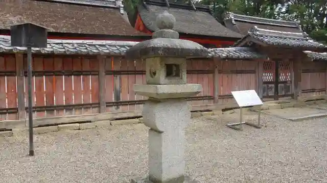 社殿手前にある変わった形の石灯籠は、茶人・古田織部考案による「織部形石灯籠」である。