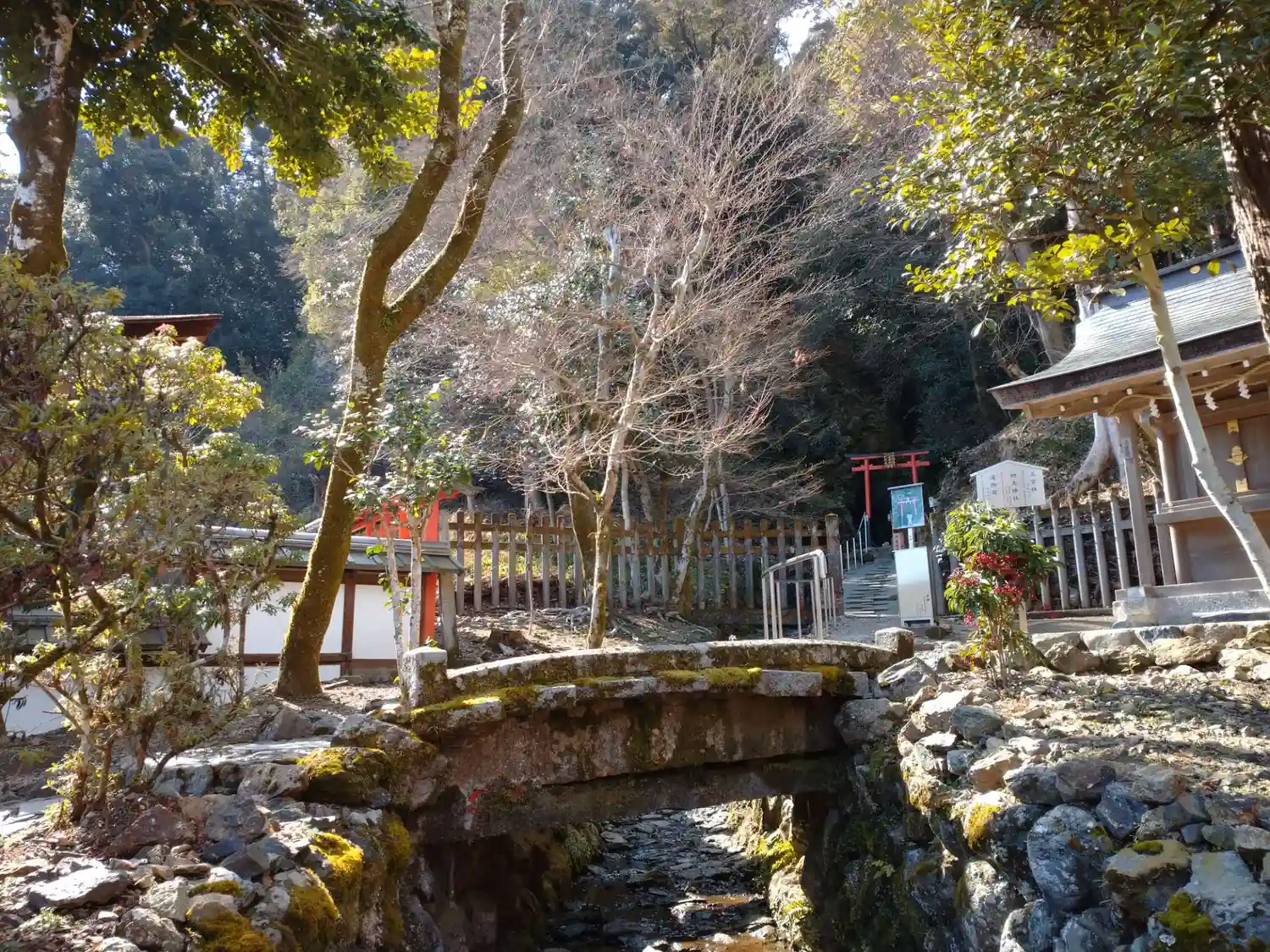 これから帰途に就く。楼門と境内の間を流れる水路。水が澄んでいてきれい。