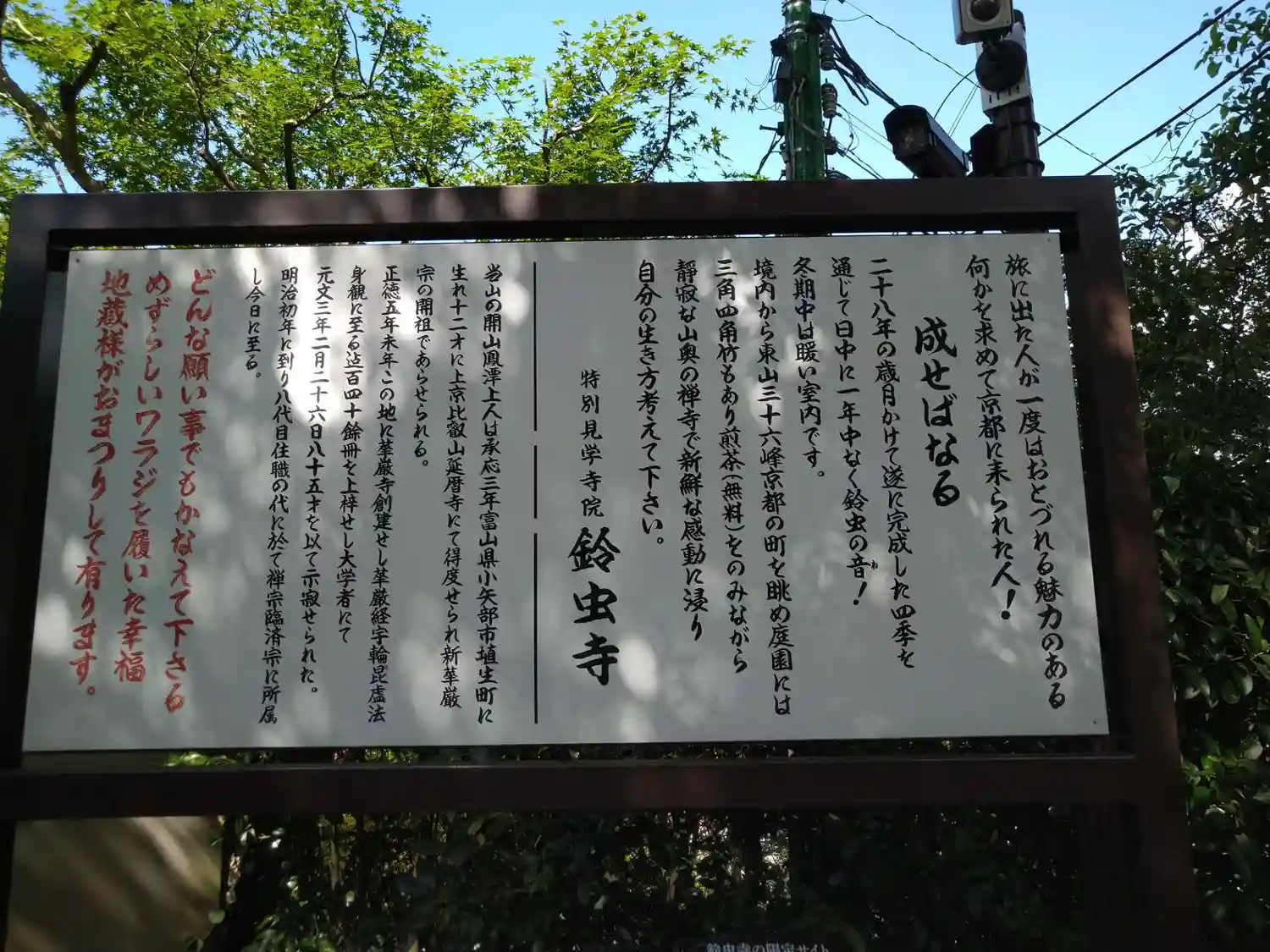 終点付近には、鈴虫寺の案内板あります。