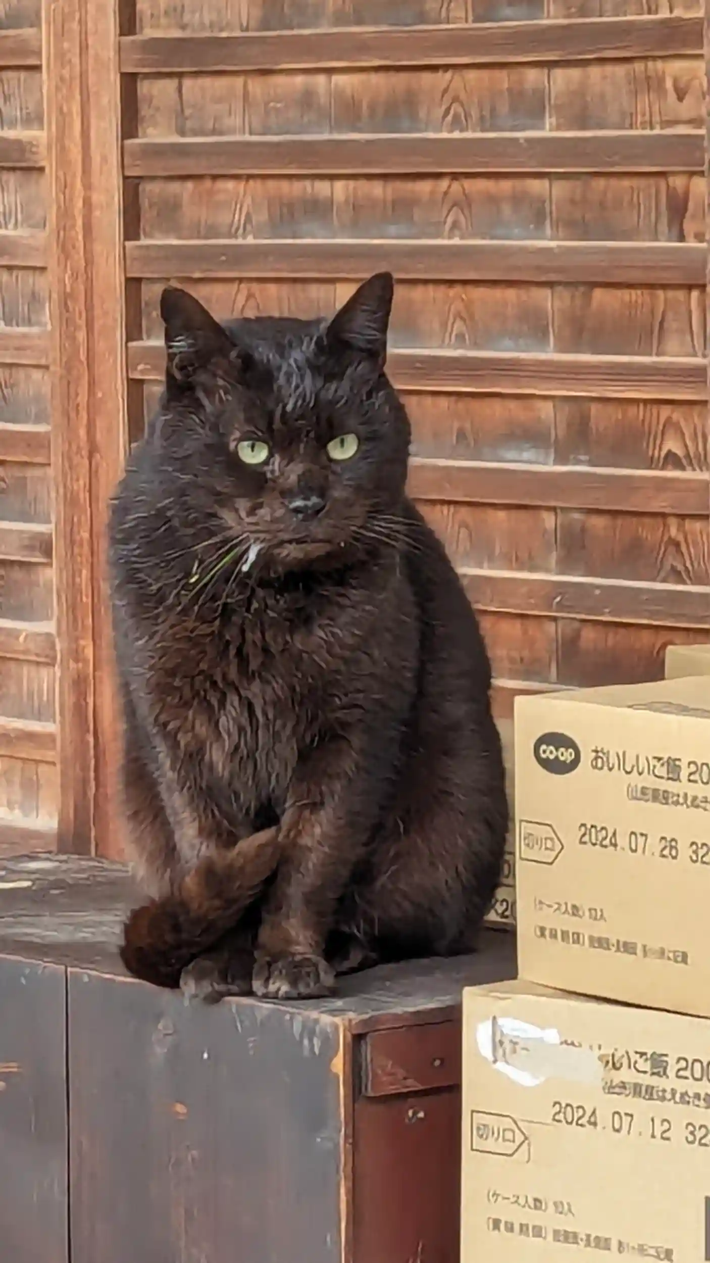 お猫様を求めて梅宮大社へ🤣梅も見頃で散り際の山茶花といい感じです。神苑入ってすぐに「思いのまま」が😍2色咲きの探しについ夢中になりました😅お猫様はずっと若い男女(カップルかは知らない😅)の膝の上でおくつろぎだったのでお願いして写真だけ撮らせていただきました。黒猫ちゃんだけ自由にしてたので座ったところを・・・貫禄ありすぎ🤣もう一匹黒猫ちゃんいたけど神殿の方に入っていっちゃいました😅