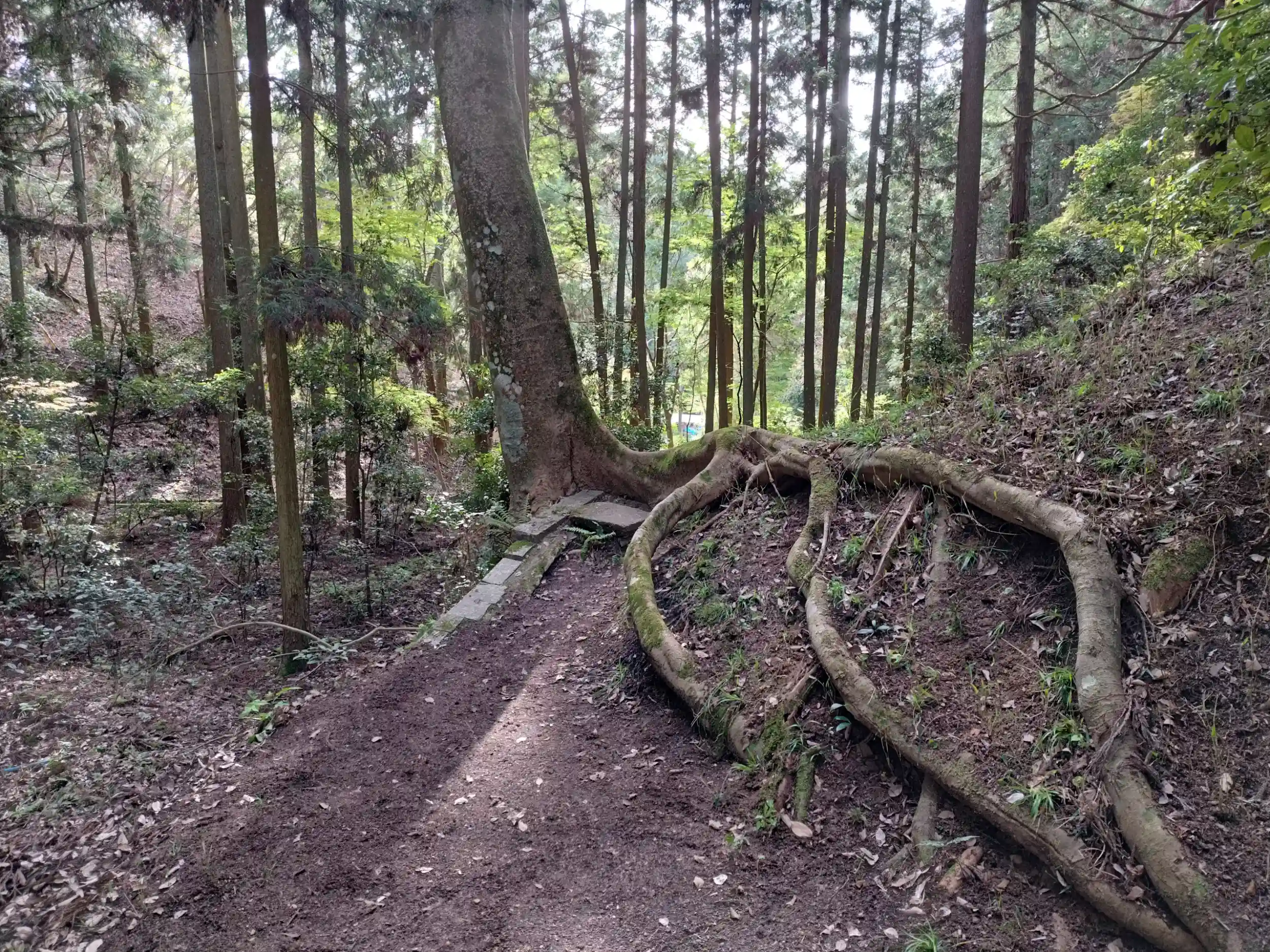 石段は、ここまで。後は、木の根っこが作る天然の階段だ。
