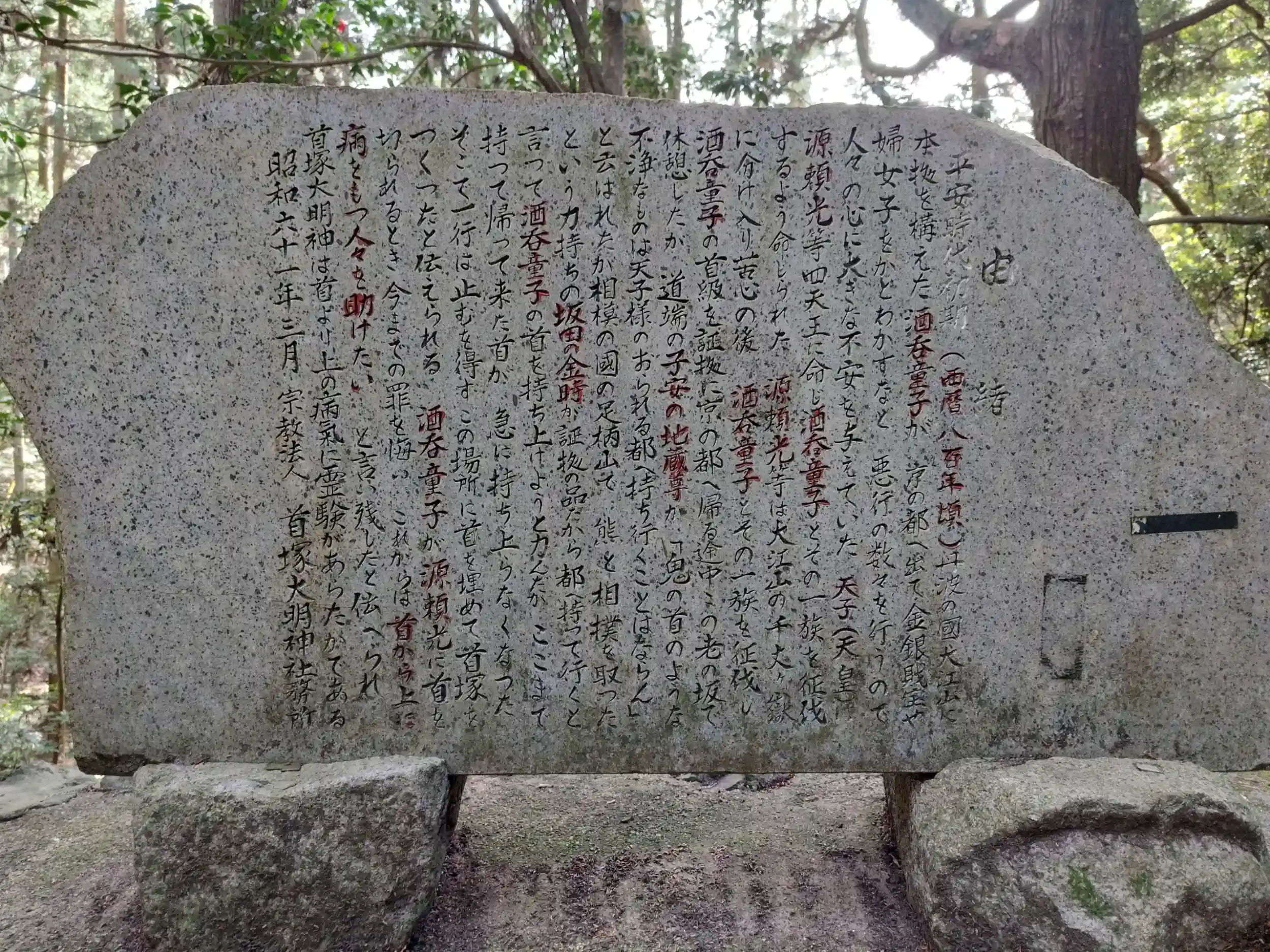 酒呑童子の首が埋まっているとされる場所で、このような気味の悪い事になっている木に出会うとは……。