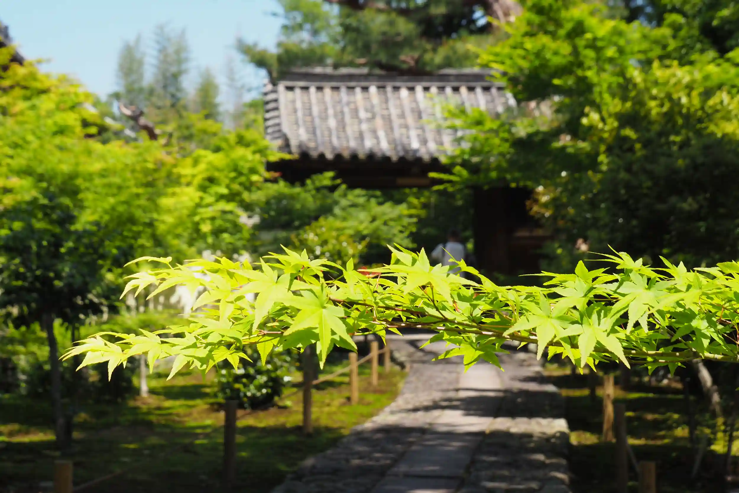 山門を超え参道に入ると新緑一色!鮮やかな景色に息をのみました。