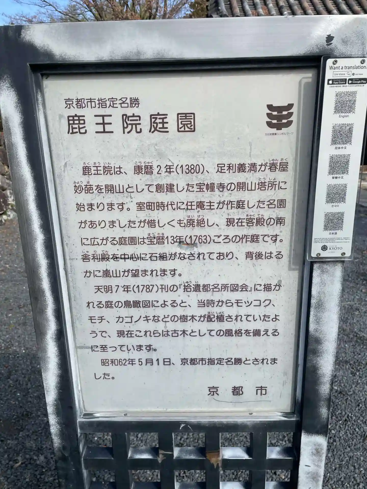 山門手前に 鹿王院庭園の説明がありました。