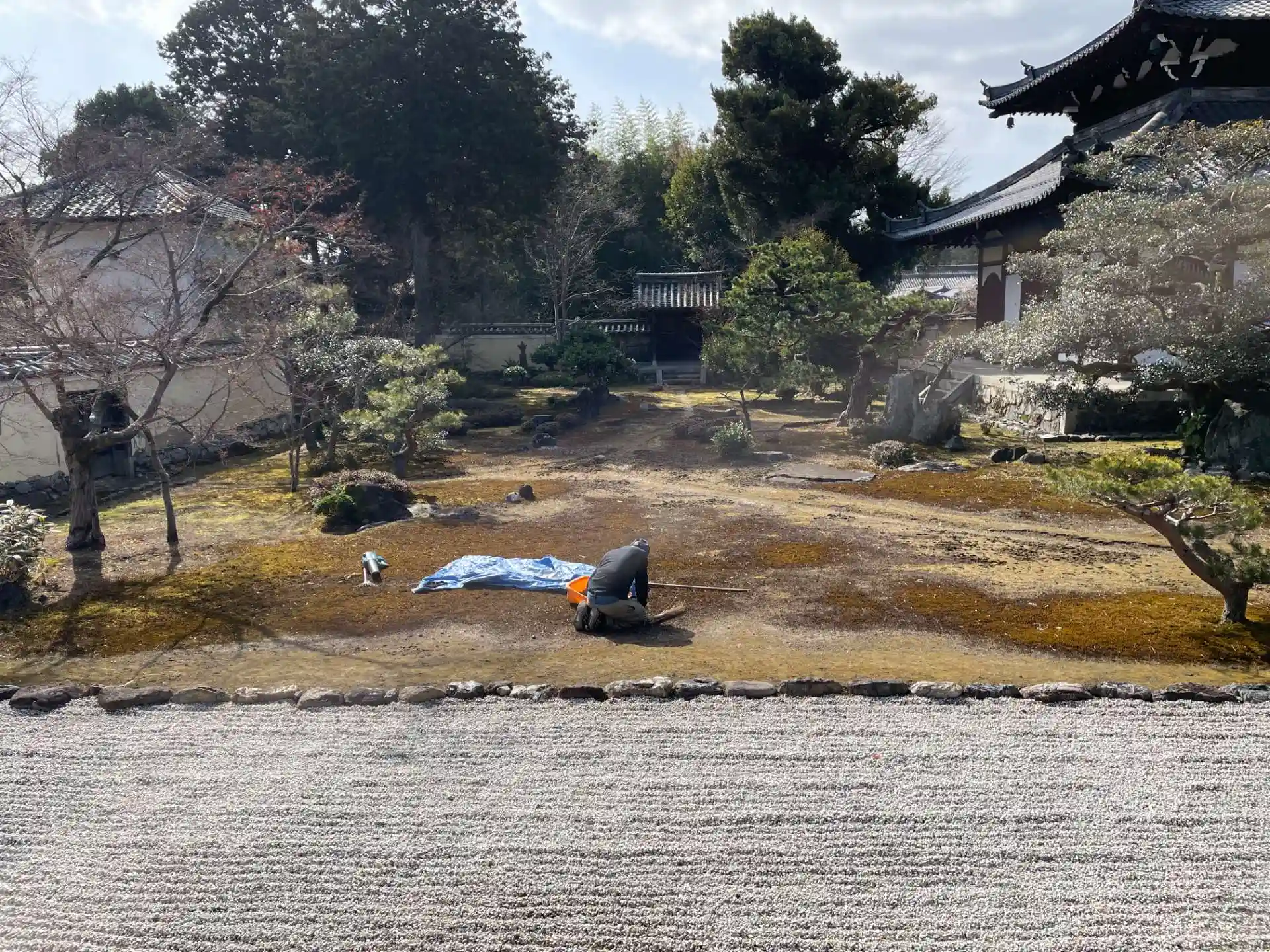 本庭では庭師の方が手入れをされている真っ最中でした。